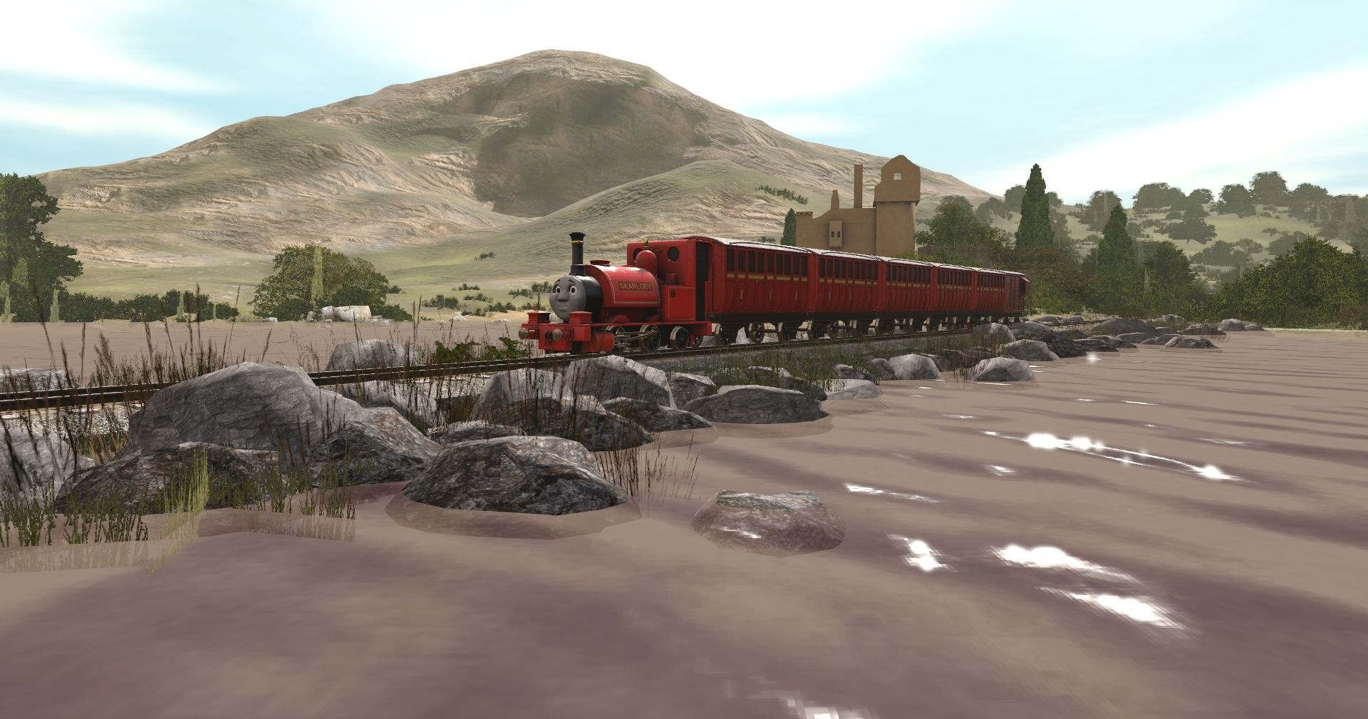 Tags: Trainz Railroad Simulator 2019, CGW Skarloey Railway - The Rheneas Extension, Default, S4 - Skarloey the Little Old Engine, S4 - Red Narrow Gauge Coach, S4 - Brakevan (Narrow Gauge)