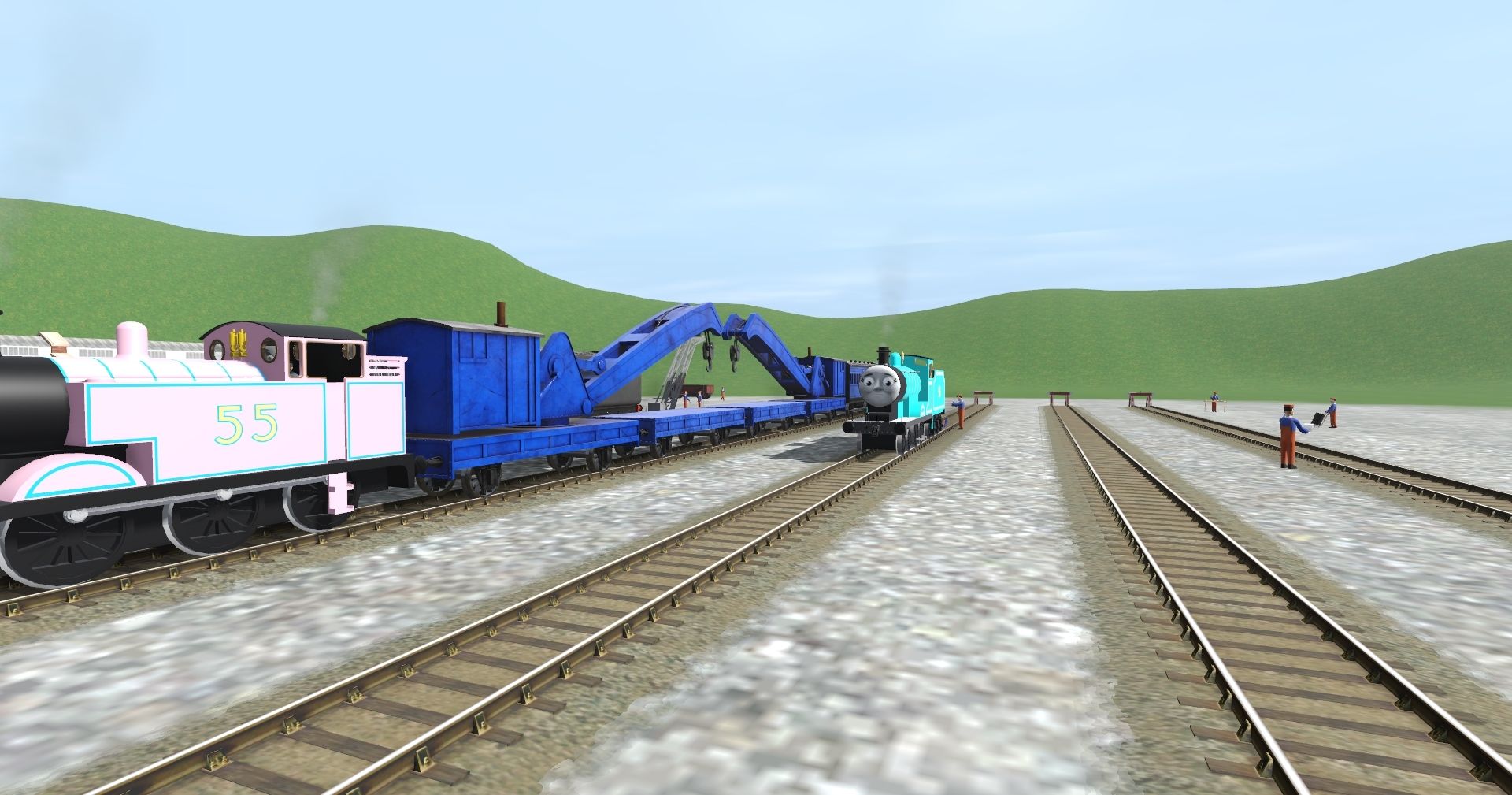 Tags: Trainz Railroad Simulator 2019, 6 Gangstas Release, Default, Flying Cam PBR, MR #16 - Danielle the Tank Engine, MR #55 - Monroe the Tank Engine, SF - The Breakdown Crane, MR #132 - Cadin the Express Engine, SF - The Breakdown Crane Flat Wagon, TSI - Murdoch The Mighty Engine, MR #56 - Millie the Tender Engine, TSI - Murdoch's Tender, SF - The Works Unit Coach, MR #132 - Cadin's Tender