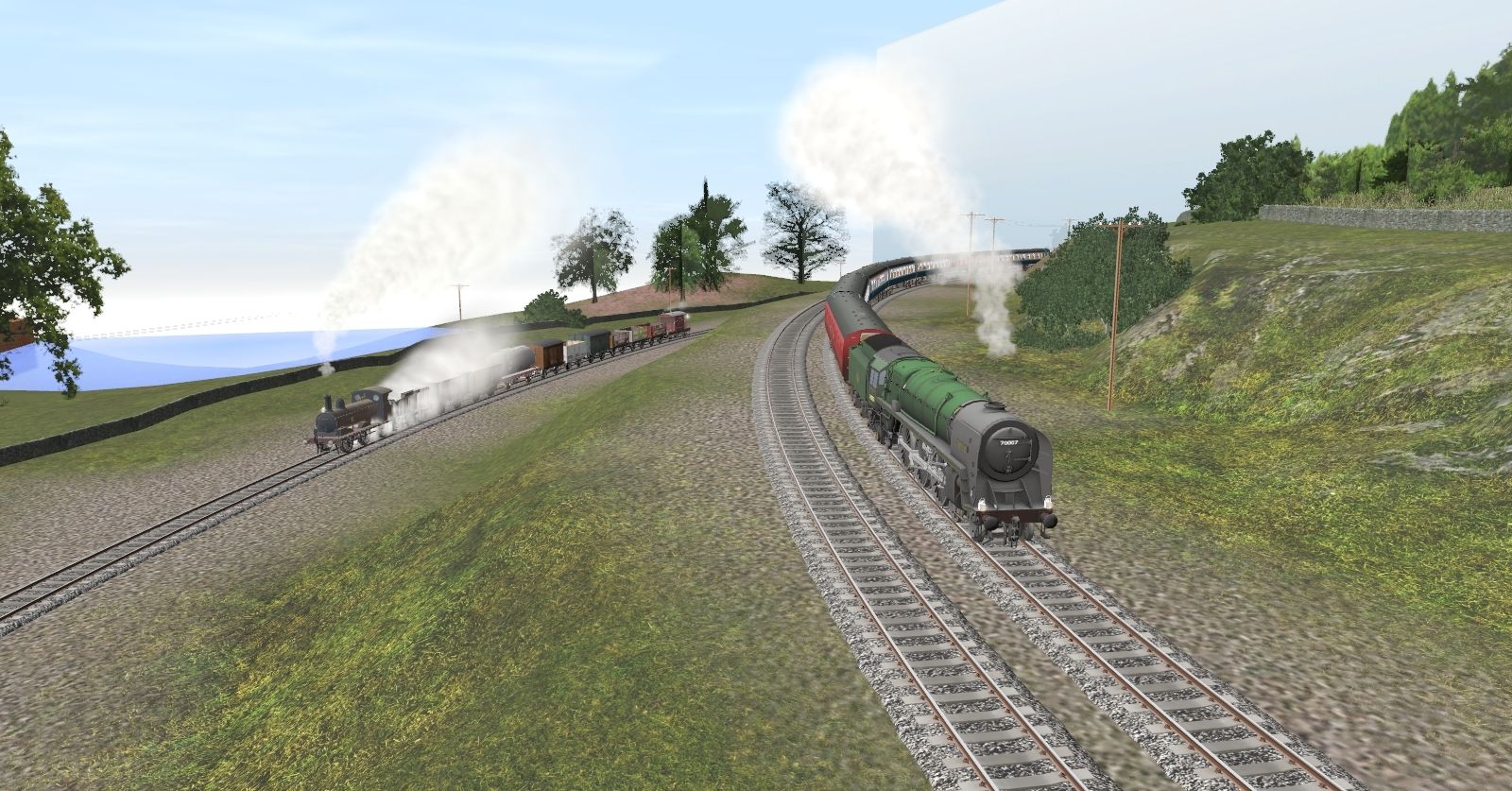 Tags: Trainz Railroad Simulator 2019, Lineside Modellation, BR Britannia Loco (late condition), J15 Passenger Loco BR Black, DB_DABgbuzf760, EuroDual_Stadler 159 201-3, BR Britannia BR1 Tender, BR Mk1 BSO Maroon, J15 GER Tender BR black (vac fitted), BR MSV weathered, BR MSV weathered2, BR TTA BP grey, BR Mk1 RKB Blue