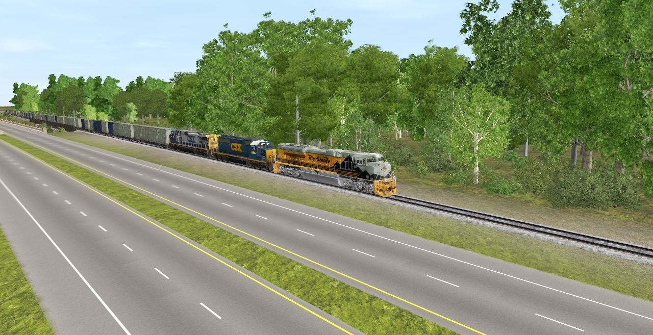 Tags: Trainz Railroad Simulator 2019, Conrail Shared Assets: Somewhere in Jersey, EMD SD70ACe D&RGW #1989, CSX SD40-2, CSX YN2 Dash 9-44CW, 85ft AWXX Flatcar