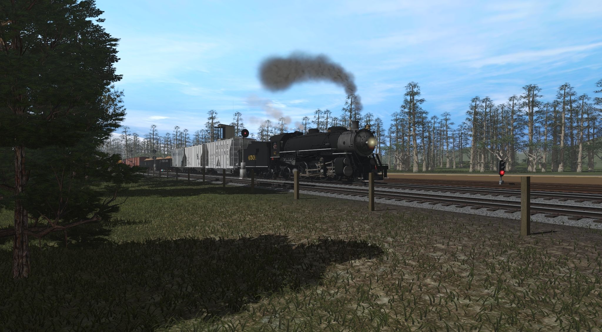 Tags: Trainz Railroad Simulator 2019, Southeastern Coastal Transportation, Default, SOU Ms Class 2-8-2 4501 (Black), SOU Ms Class 2-8-2 Tender 4501 (Black), 2Bay ACF CovHopper L&N Dixie Line #, UTLX X Class 6500-gallon tank car - As Built, LO C&O 2-bay 10 hatch 833, UTLX X Class 6500-gallon tank car - 1910s, 40ft Boxcar USRA CA&L 1, 2-bay Covered hopper Monon 220032, UTLX X Class 6000-gallon tank car, 40ft Boxcar ACL, 40ft Reefer Hanrahan 1209