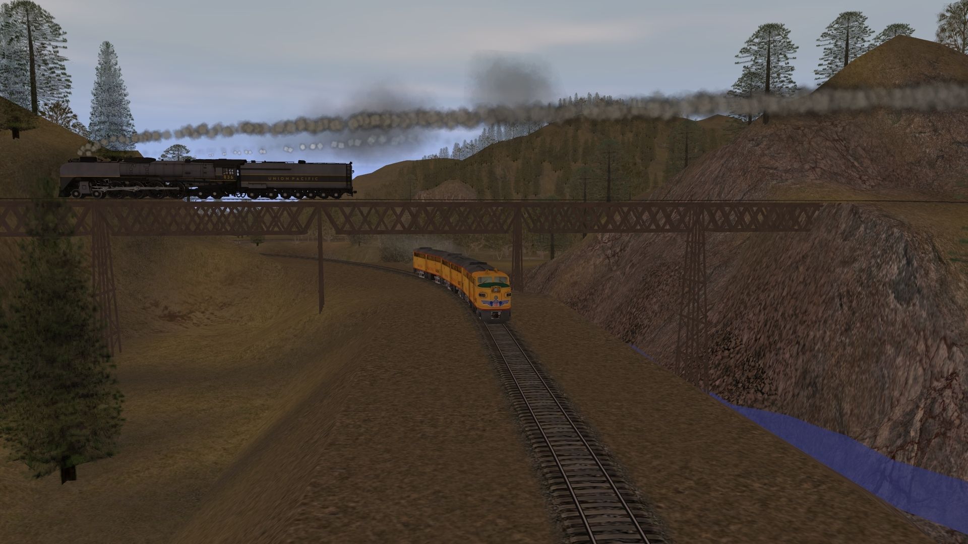 Tags: Trainz: A New Era, Highland Valley 2004, Highland Valley 2004 - Default 2, UP ALCo FA-1 Late, UP ALCo FB-1 Late, UP ALCo FB-1 C Late, UP Class FEF-3 TTG-Y, UP Class FEF 23-C Oil Tender TTG-Y