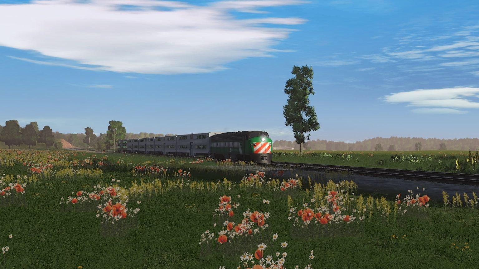 Tags: Trainz Railroad Simulator 2019, Indiana Western Modern TRS19 1.2, E9 BN 9918, Metra Nippon Sharyo Control Car 8500 Series K3LA, CSXT Trinity 3 Bay Hopper, DJJX Trinity 3 Bay Hopper, Pullman 4 window Bi-Level Coach UNDEC fluted siding