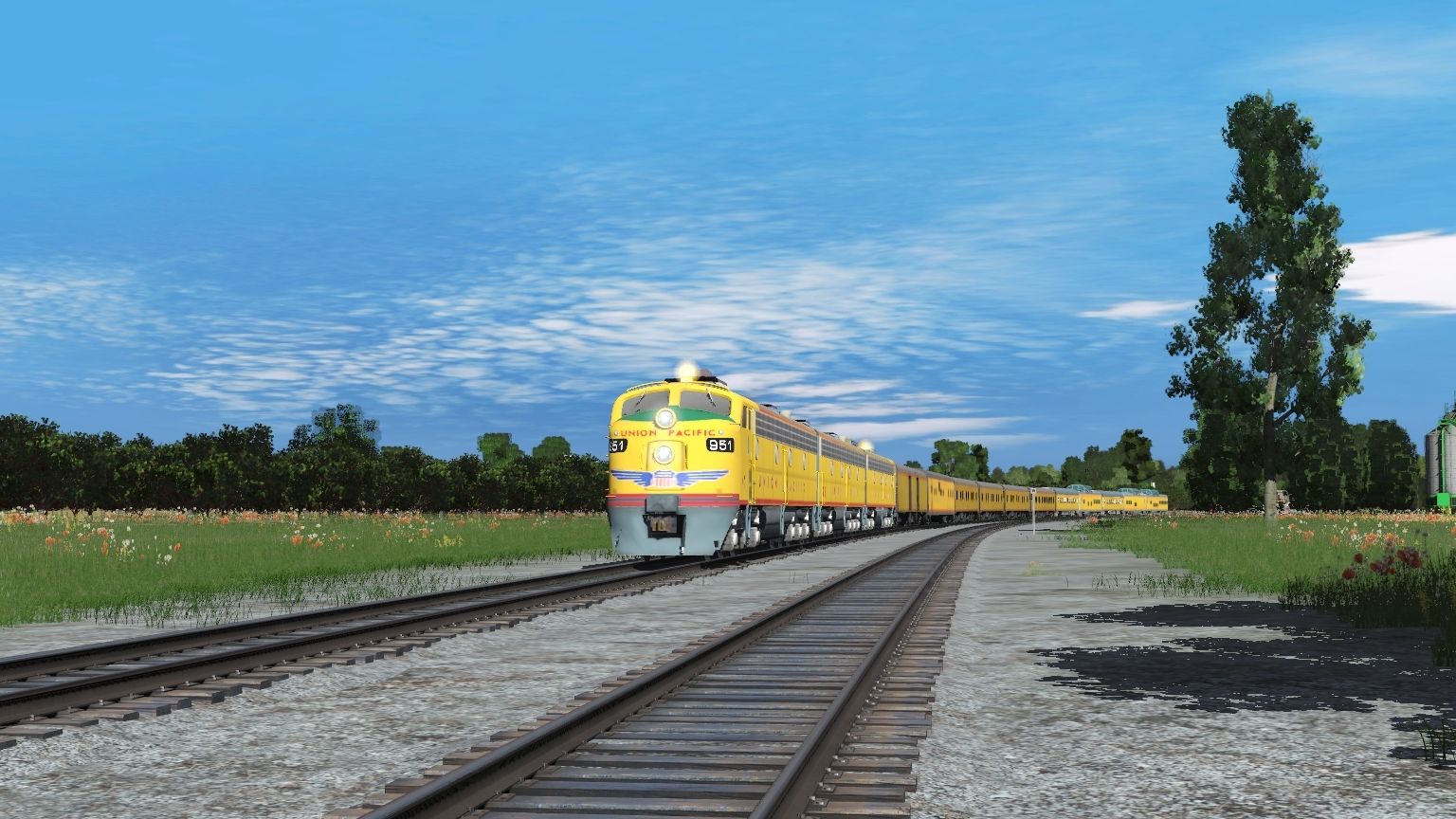 Tags: Trainz Railroad Simulator 2019, Indiana Western Modern TRS19 1.2, up e9a, up e9b, up e9a cop, UPP 5714 'Pony Express' Baggage Car, up Lightweight COSF Baggage Aux Power Dorm, UPP 1602 'Green River' Sleeper, UPP 1610 'Portola' Sleeper, UPP 200 'Omaha' Sleeper, UP Budd Coach Car, UP dome diner 8001, UP_Dome_Lounge_Observation_9010