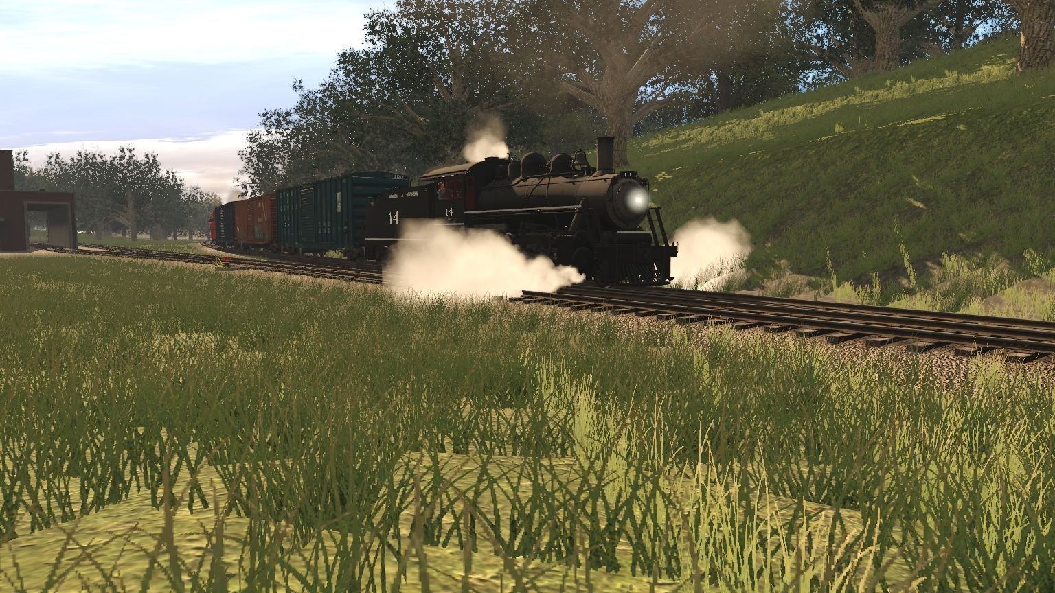 Tags: Trainz Railroad Simulator 2019, Aragon & Southern, A&S G16a Engine, 0-4-0T New Hope Valley 17, A&S G16a Tender, CAGY 50ft Boxcar FMC, CN 50' ACF Boxcar 3, CSXT 50ft Boxcar FMC, A&S 1890s Woodside Caboose, Meme Boxcar 3, , Caboose C&O A915 red, CN Wood Caboose