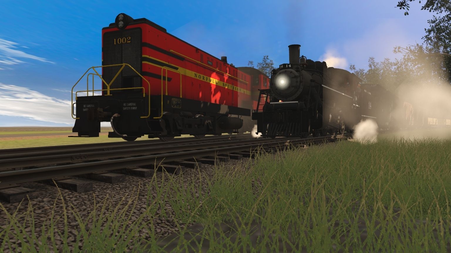Tags: Trainz Railroad Simulator 2019, Aragon & Southern, Norfolk Southern Baldwin S12, A&S G16a Engine, Norfolk Southern Baldwin S12 V2, A&S G16a Tender, CAGY 50ft Boxcar FMC, CN 50' ACF Boxcar 3, CSXT 50ft Boxcar FMC, 70ton AAR Flatcar C&O, 70ton AAR Flatcar PM, 50ton AAR Flatcar CP, A&S 1890s Woodside Caboose