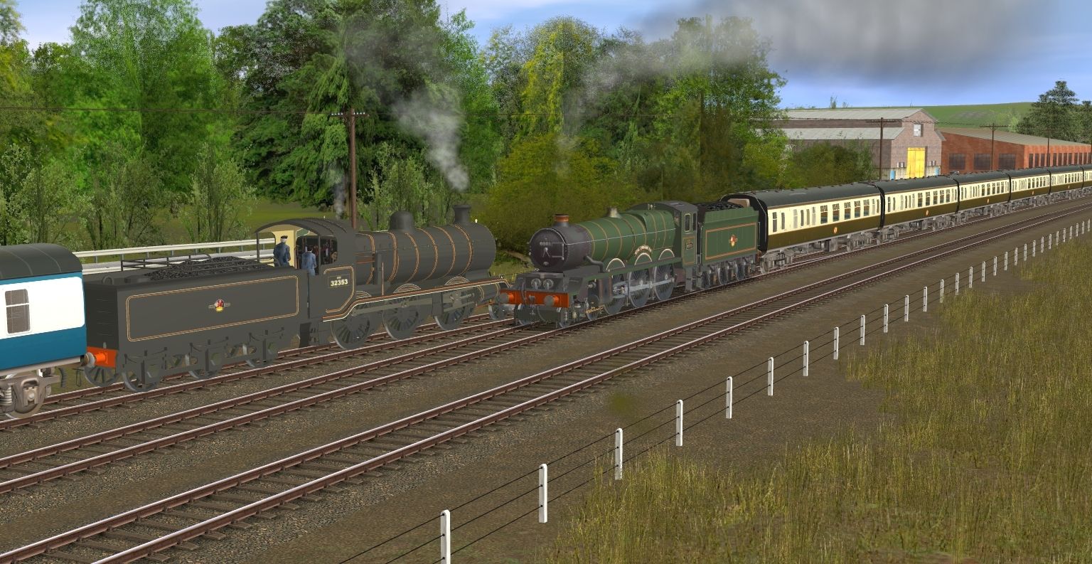 Tags: Trainz: A New Era, UK Fictional TANE Route_1.0, UK Fictional TANE Route_1.0 - Default, LBSCR K Class BR Livery, GWR King Edward VII, L&YR Hughes Class 8 (BR Green; Smoke Deflectors), BR Mk1 BFK Blue, LBSCR K Class Tender BR Livery, GWR King late logo class tender, BR Mk1 BCK Brown, L&YR Hughes Class 8 Tender (BR Green)