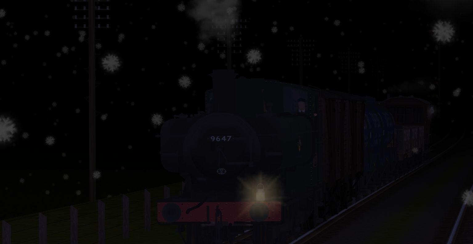 Tags: Trainz: A New Era, Somerset And Dorset JR For TC3 test, Somerset And Dorset JR For TC3 test - Default, Flying Cam, AA BR 57XX 0-6-0PT 9647 BR7A, BR 12T Standard Van, RCH 14t Milk Tanker Express Dairys, RCH 1923 5 Plank Colthrop #304, BR Freight CAR Brake Bauxite