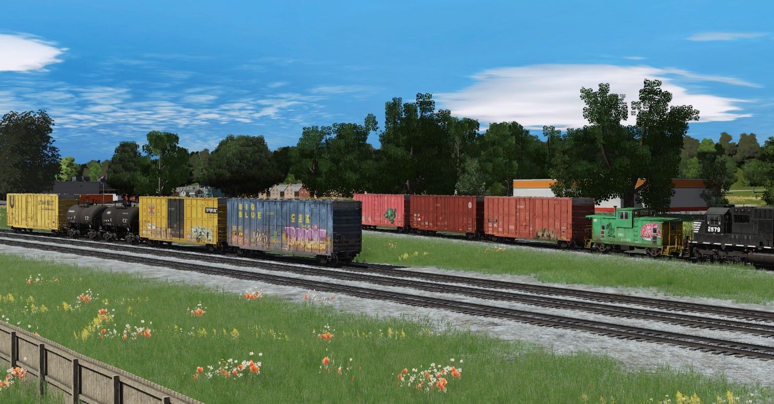 Tags: Trainz Railroad Simulator 2019, Indiana Western Modern TRS19 90s, NS SD70 (ex-cr), 50ft High Cube Boxcar CSXT, ERSX Ce-11 Caboose TEST (weathered), 50ft High Cube Boxcar FBOX, 50ft Boxcar WRWK, CAGX 10000 gal tank car, ALDX 10000 gal tank car, 50ft High Cube Boxcar BNSF, 50ft Boxcar UB, 50ft High Cube Boxcar CRLE, Evans Covered Hopper MP Clean
