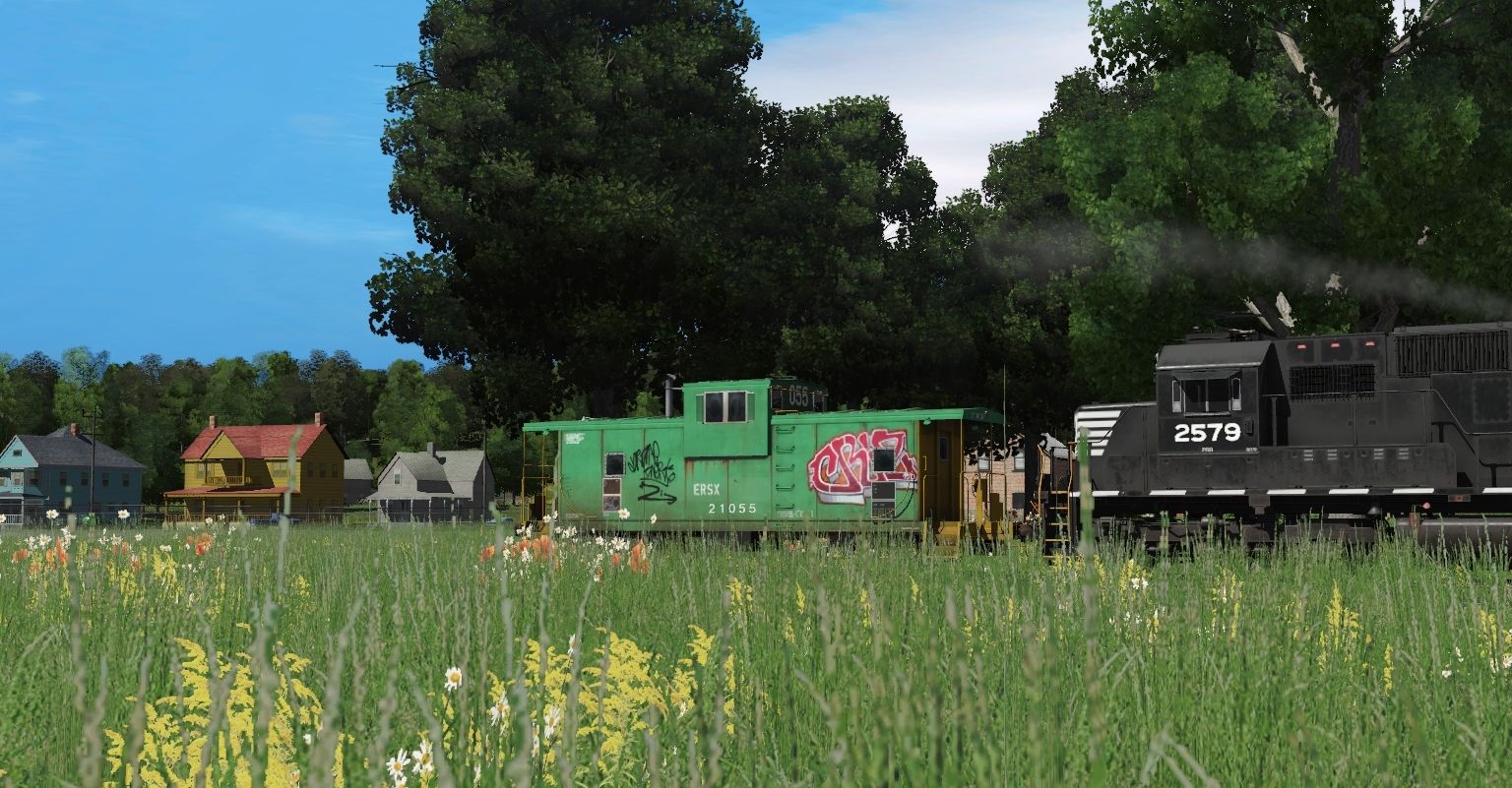 Tags: Trainz Railroad Simulator 2019, Indiana Western Modern TRS19 90s, NS SD70 (ex-cr), ERSX Ce-11 Caboose TEST (weathered), 50ft Boxcar WRWK, 50ft Boxcar UB, 50ft High Cube Boxcar BNSF, ALDX 10000 gal tank car, CAGX 10000 gal tank car, 50ft High Cube Boxcar CRLE, 50ft High Cube Boxcar FBOX, 50ft High Cube Boxcar CSXT, Evans Covered Hopper MP Clean