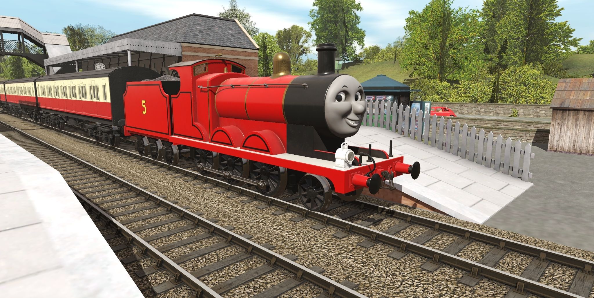Tags: Trainz Railroad Simulator 2019, IoS - The Kellsthorpe Extension, Default, TSI - James the Red Engine, TSI - James' Tender, Engie's - TVS S2 Maunsell Composite Coach (TS19), Engie's - TVS S2 Maunsell Brake Coach (TS19)