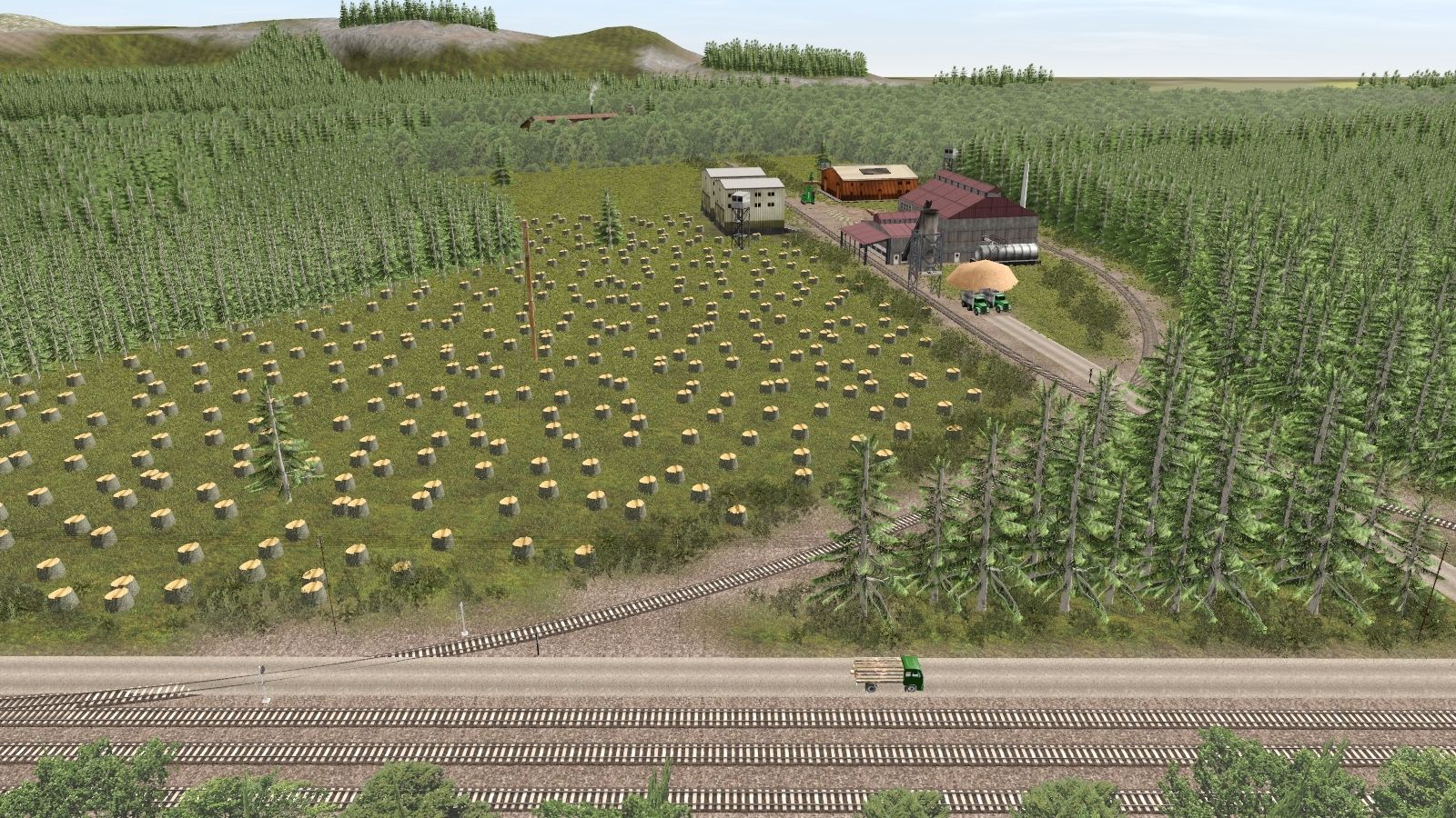 Posted by: Alco_P-A | Posted:2023-07-21 16:15:47 Caption: Willis Bro. Lumber Mill Tags: Trainz Railroad Simulator 2019, A Little Logging Town, ST, SG Skeleton 46ft MLOG