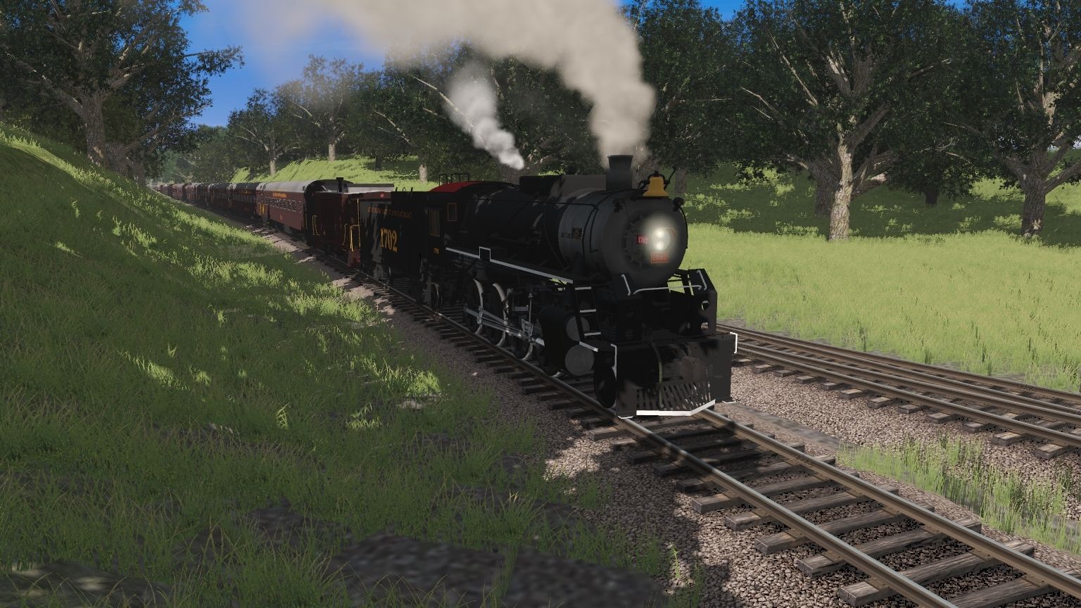 Tags: Trainz Railroad Simulator 2019, Aragon & Southern, GSMR S160 2023 #1702 Engine, GSMR GP38-3 #1009 V1, GSMR 2335 GP38-3, GSMR 777 GP9 chop nose, GSMR 1755 GP9 chop nose, GSMR 1751 GP9 chop nose, GSMR S160 2023 #1702 Tender, GSMR gen Bay Window Caboose, GSMR Coach SYLVA Lightweight V1, GSMR Coach royal palm Lightweight V1, RBOX P-S 50_6ft Boxcar