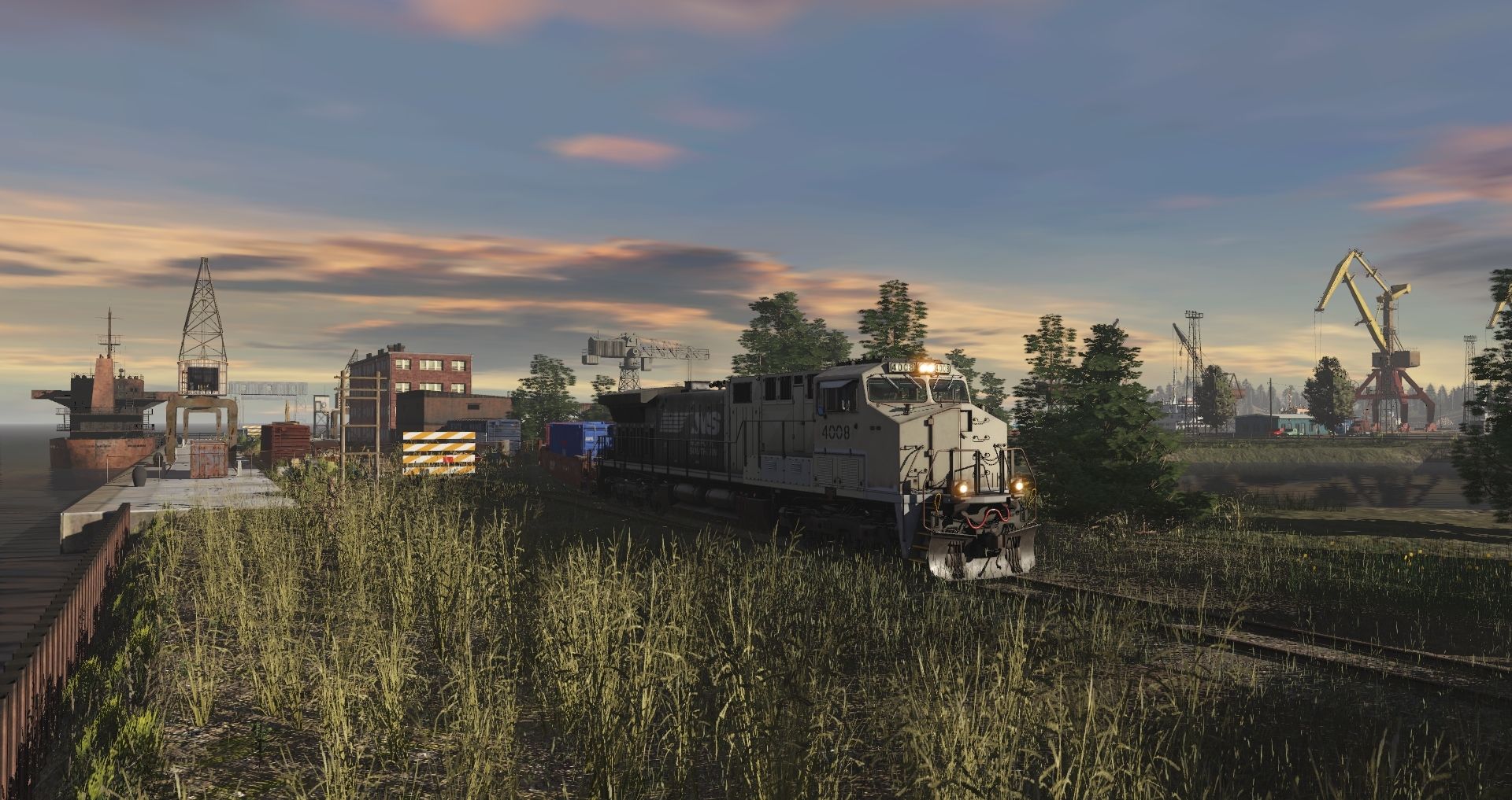 Tags: Trainz Railroad Simulator 2019, Eagle River Railway B3, 01 Monday - 14:57 21/05/2022 - 00:19:01, NS AC44C6M Primer early (ex-HH), Generic Industrial 45 Tonner Yellow PH1, Eagle River 4-6-4T Engine, Morristown & Erie SW1500 #20, Industrial SW1200 dirty, AEX C40-8M 100000 -ex QNS&L-, NS SD70ACe Heritage ERI, NS SD60E, AMTK ACF Gondola 13278, 53ft BNSF H3 Wellcar Weathered (Single), AMTK ACF Gondola 13382