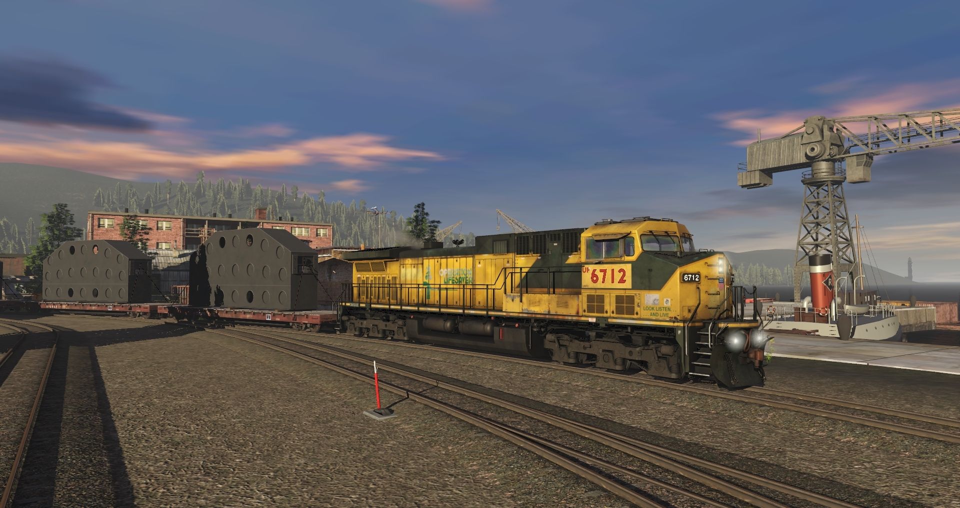 Tags: Trainz Railroad Simulator 2019, Eagle River Railway B3, 01 Monday - 14:57 21/05/2022 - 00:19:01, UP AC4400CW EX-CNW 6703-6737 TS19, Industrial SW1200 dirty, Morristown & Erie SW1500 #20, Generic Industrial 45 Tonner Yellow PH1, Eagle River 4-6-4T Engine, AEX C40-8M 100000 -ex QNS&L-, NS SD70ACe Heritage ERI, NS SD60E, SP 60ft flatcar, AMTK ACF Gondola 13382, AMTK ACF Gondola 13278