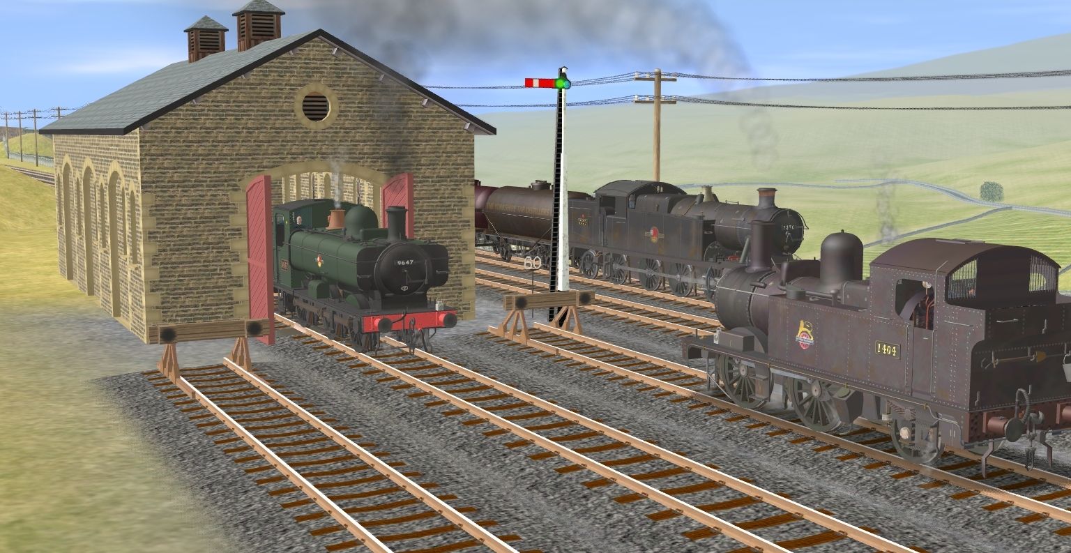 Tags: Trainz: A New Era, Hawes Junction, Hawes Junction - Default, BR 1400 class ex GWR, AA BR 57XX 0-6-0PT 9647 BR7A, BR ex GWR 7200 class, BR ex GWR 56xx class lined, Yorkshire Tar Distillers 21 foot Tanker Early detailed - weathered, Yorks & Lincs Tar Distillation 18 foot Tanker Early detailed - weathered, WB Dick Lubricants 18 foot Tanker Early detailed - weathered, United Oil Importers 21 foot Tanker Early detailed - weathered, Swindon United Gas 18 foot Tanker Early detailed - weathered, South Eastern Gas Board 18 foot Tanker Early detailed - weathered, Shell-BP v1 18 foot Tanker Early detailed - weathered