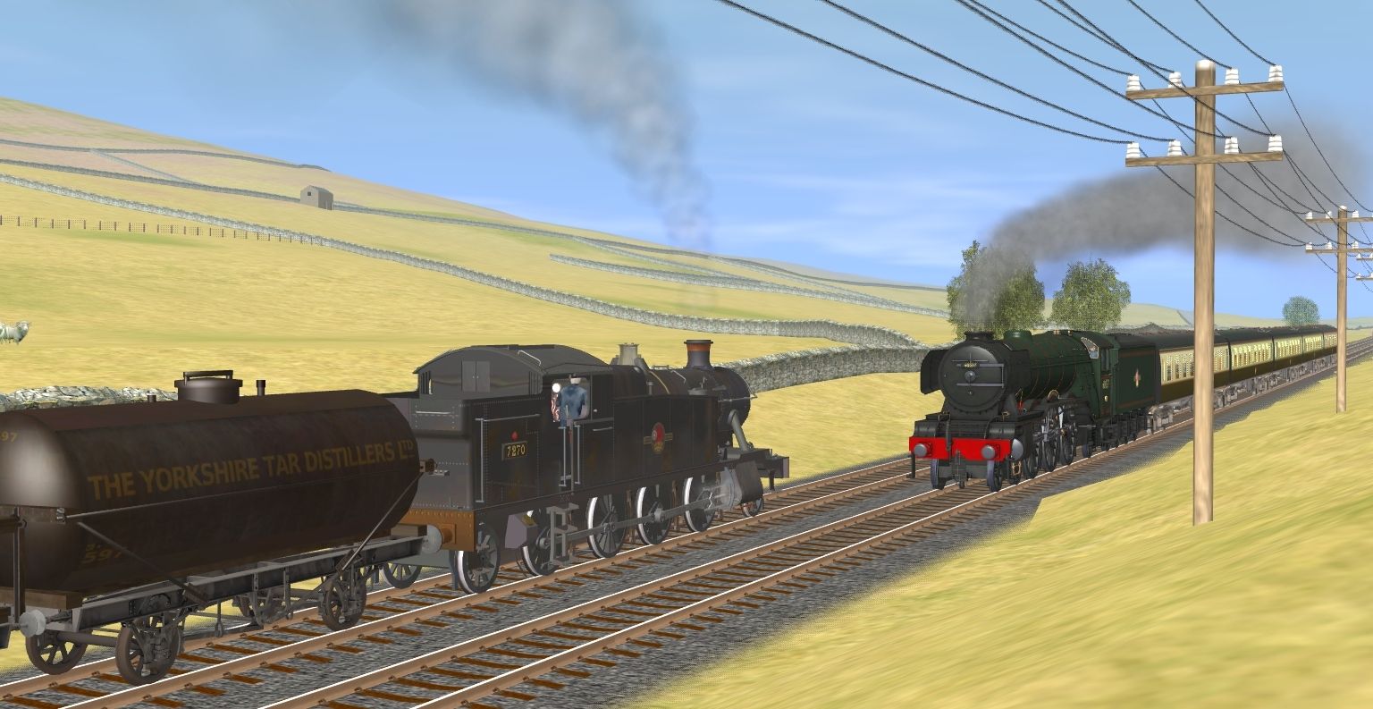 Tags: Trainz: A New Era, Hawes Junction, Hawes Junction - Default, BR ex GWR 7200 class, BR Gresley A3 LHD Green Double Chimney Smoke Deflectors, United Oil Importers 21 foot Tanker Early detailed - weathered, WB Dick Lubricants 18 foot Tanker Early detailed - weathered, Swindon United Gas 18 foot Tanker Early detailed - weathered, Yorks & Lincs Tar Distillation 18 foot Tanker Early detailed - weathered, South Eastern Gas Board 18 foot Tanker Early detailed - weathered, Yorkshire Tar Distillers 21 foot Tanker Early detailed - weathered, Shell-BP v1 18 foot Tanker Early detailed - weathered, Midland Tar Distillers 18 foot Tanker Early detailed - weathered, Shell BP 21 foot Tanker Early detailed - weathered