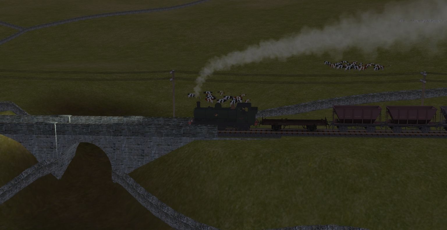 Tags: Trainz: A New Era, Hawes Junction, Hawes Junction - Default, AA BR 57XX 0-6-0PT 9647 BR7A, BR 22T Conflat P Ex-works, BR 25T Anhydrite Hopper, Brentnall & Cleland - London 7 plank wagon dirty, BR(W) Bauxite 20T Toad Brake Van Weathered Fitted