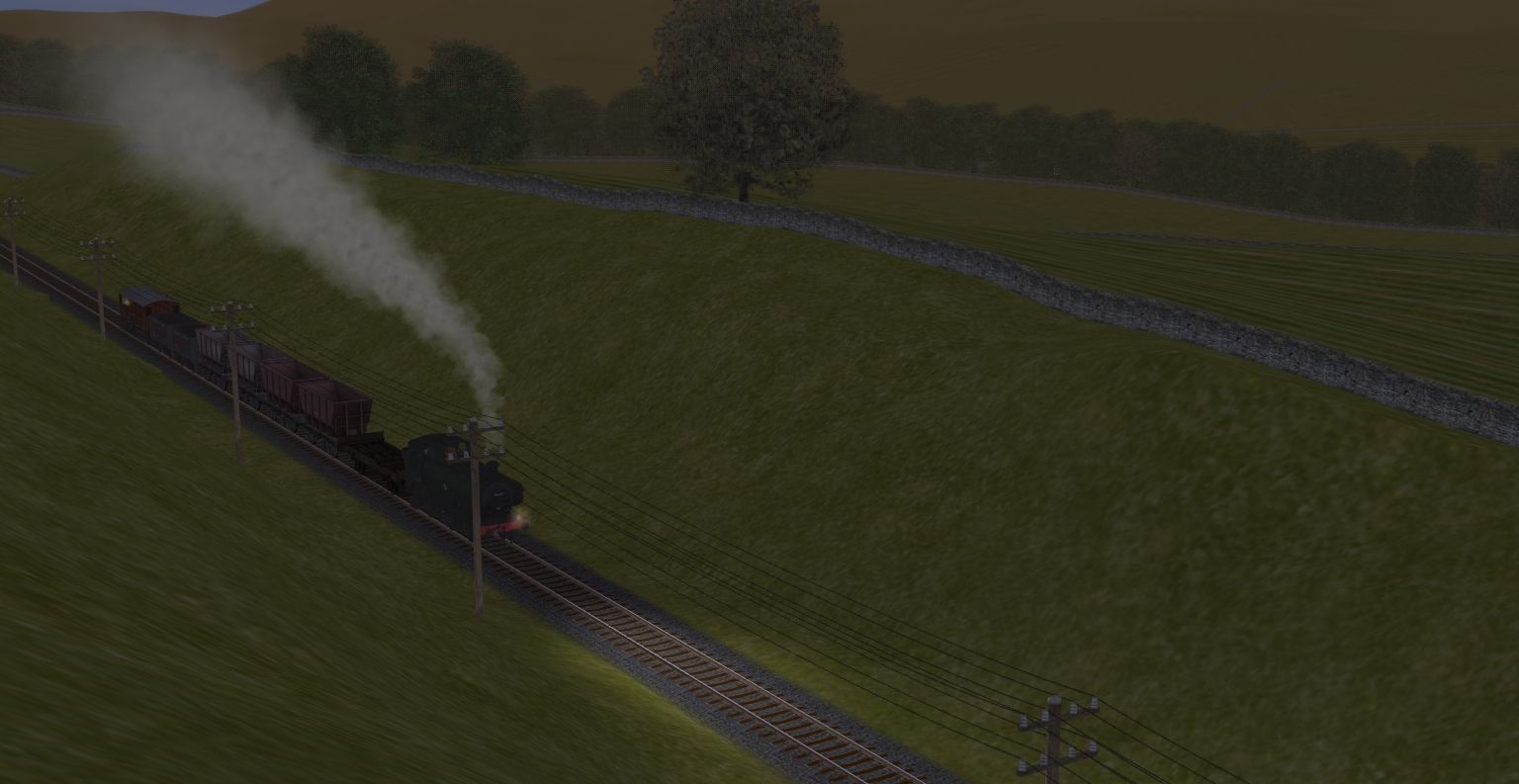 Tags: Trainz: A New Era, Hawes Junction, Hawes Junction - Default, AA BR 57XX 0-6-0PT 9647 BR7A, BR 22T Conflat P Ex-works, BR 25T Anhydrite Hopper, Brentnall & Cleland - London 7 plank wagon dirty, BR(W) Bauxite 20T Toad Brake Van Weathered Fitted