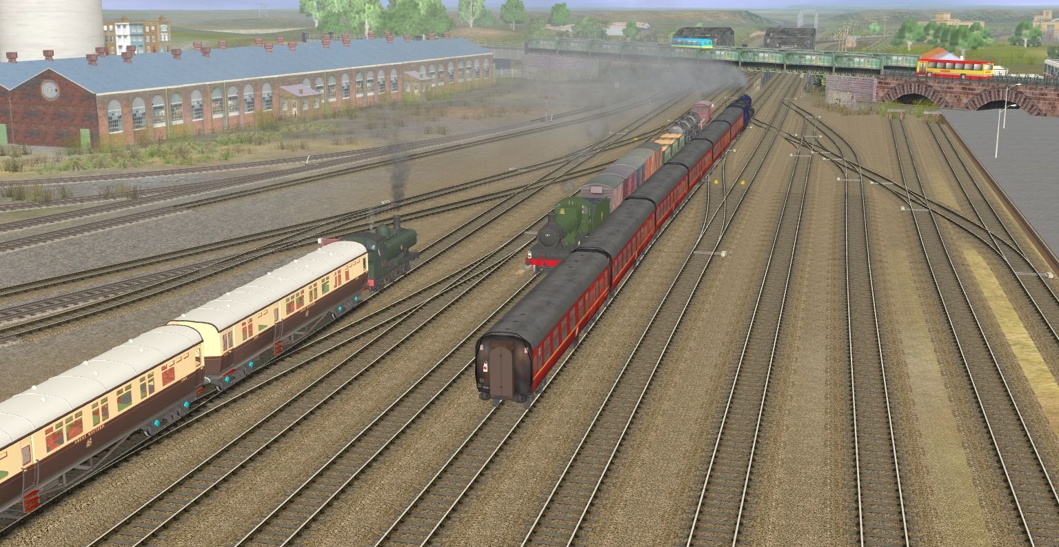 Tags: Trainz: A New Era, The Railroad Vigilantes, The Railroad Vigilantes - Default, GWR Autocoach, AA BR 57XX 0-6-0PT 9647 BR7A, GWR Churchward 43xx (BR Green), BR Gresley A3 LHD Ultramarine Blue, GWR Churchward 43xx Tender (BR Green), BR standard van, BR 12T Fitted Van, RCH 1923 7 Plank J Brennan, RCH 14T Class B Tanker (Shell-BP), BR 13T Steel Open Diag 1/019, BR Maroon Mk1 BCK