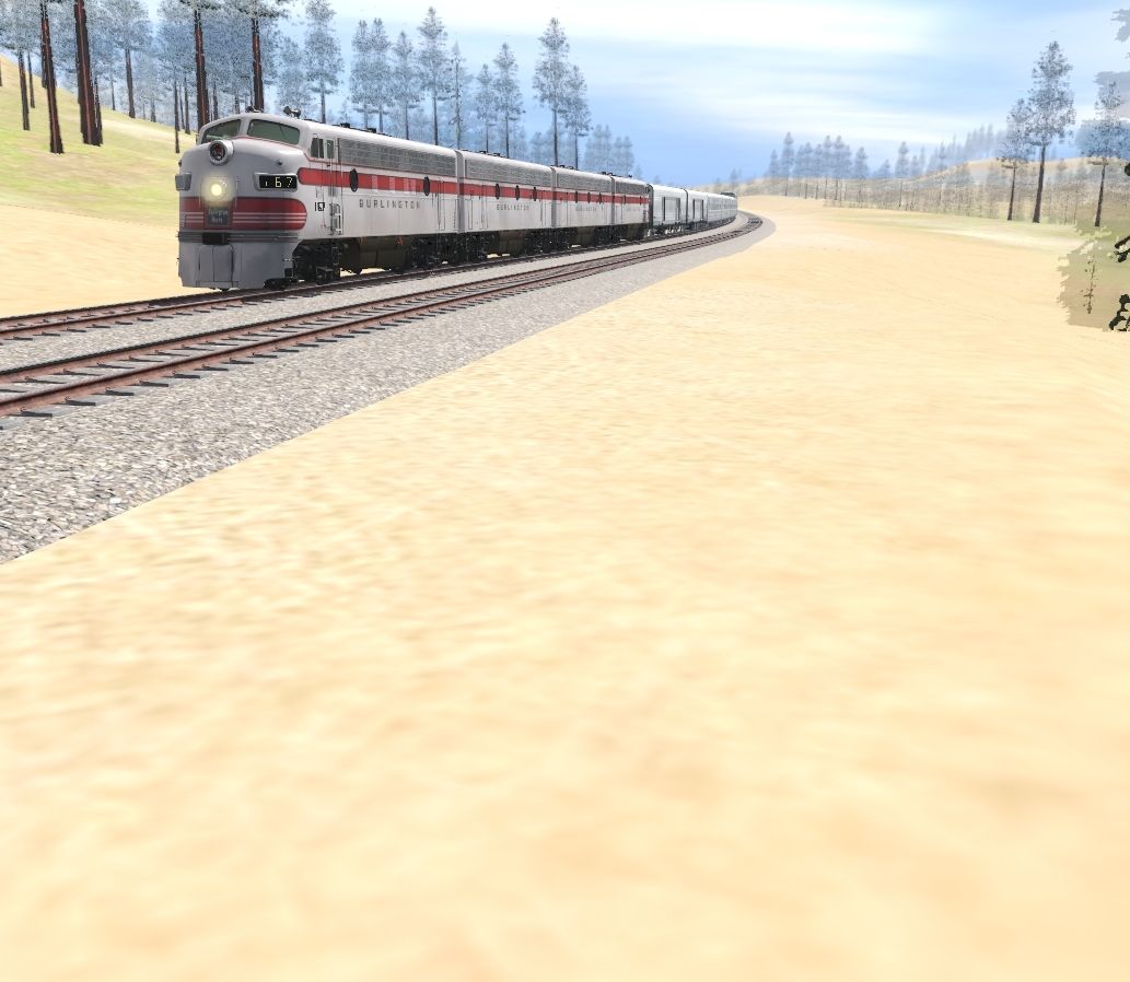 Tags: Trainz Railroad Simulator 2019, Crawford Hill, CB&Q F7B 'B' Early Clean, CB&Q F7A 'A' Early Clean, CB&Q O5b Engine, CBQ Baggage, CB&Q California Zephyr - 4720, CB&Q California Zephyr - 4742, CBQ Diner, CBQ 10-6 Sleeper Type A, CBQ Woodside Caboose 14555, CB&Q XM-32 Express Boxcar, 40ft Boxcar USRA PRR 1