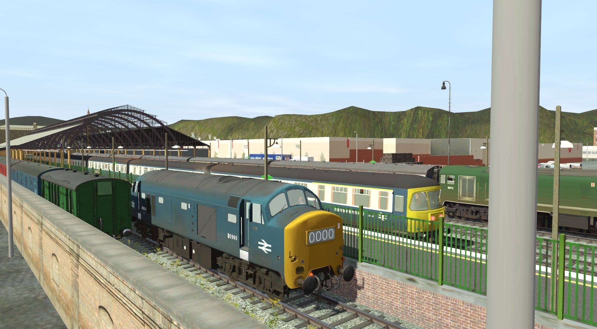 Tags: Trainz Railroad Simulator 2022, ADL Green Park 1.21, Default, BR Class 23 D5909 blue, Class 124 DMC with Yellow Headcode Panel, Metrovick Co Bo D5712, Metrovick Co Bo D5701, Class 124 MBSK, Class 124 DMC, BR Class 24 24129 blue ploughs, BR Class 22 D6300 D6303 blue yellow wp box hc, BR Maunsell PMV - Passenger Miscelaneous Van - Green, BR Mk1 BSK BlueGrey, BR Mk1 GUV Blue