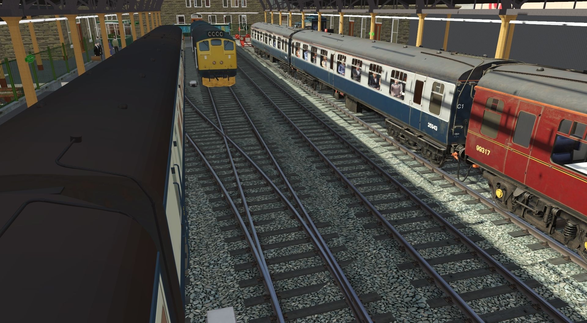 Tags: Trainz Railroad Simulator 2022, ADL Green Park 1.21, Default, Class 124 MBSK, Class 124 DMC, BR Class 24 24129 blue ploughs, BR Class 22 D6300 D6303 blue yellow wp box hc, Class 124 DMC with Yellow Headcode Panel, BR Class 23 D5909 blue, Metrovick Co Bo D5712, Metrovick Co Bo D5701, WCR Mk1 TSO, BR Mk1 GUV Blue (Express Parcels), BR Mk1 RMB BlueGrey