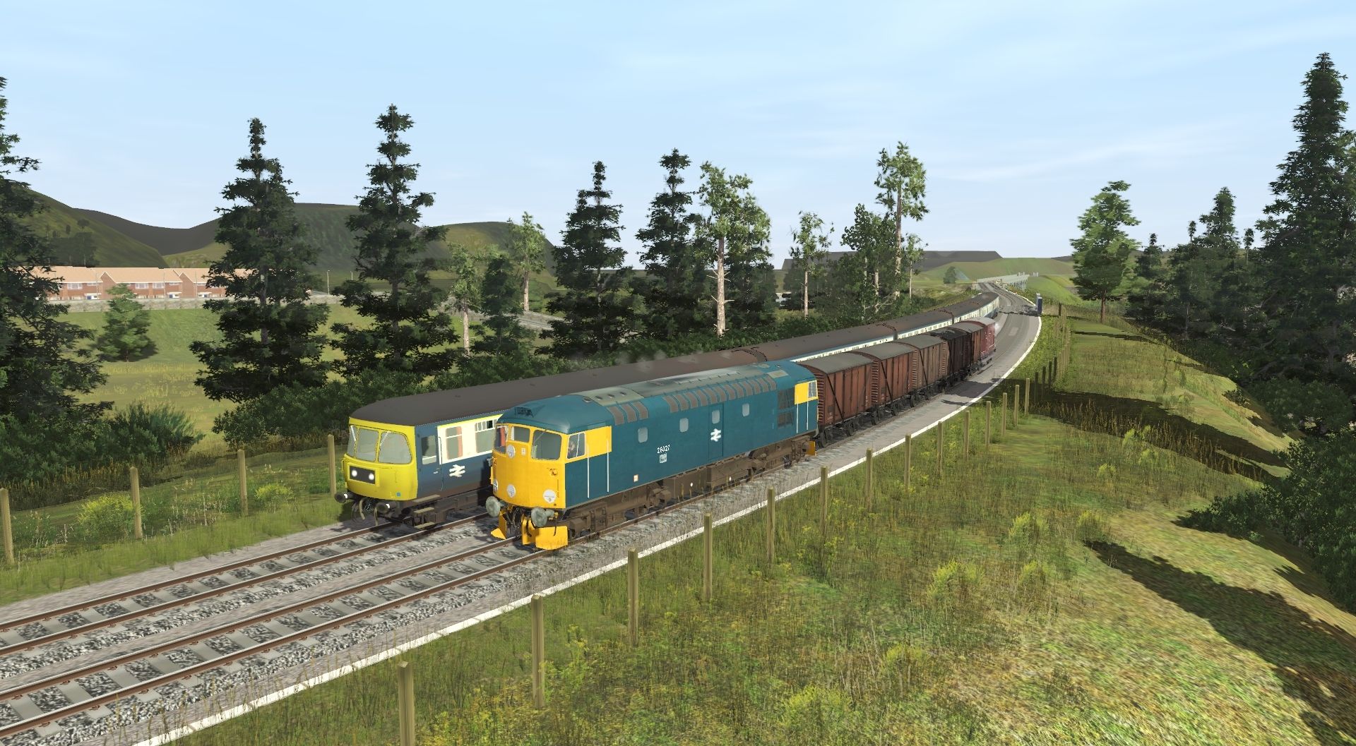 Tags: Trainz Railroad Simulator 2022, ADL Green Park 1.21, Default, BR Class 26/1 Blue discs, Class 124 DMC, Class 124 MBSK, Class 124 DMC with Yellow Headcode Panel, BR Mk1 BG BlueGrey, BR 12T Standard Van Weathered, BR 12T Standard Van (Plywood), BR Freight CAR Brake Bauxite, Class 124 TSL