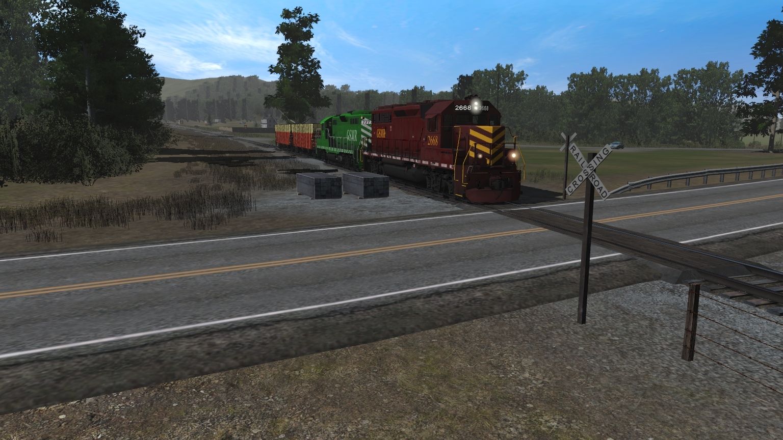 Posted by: LanezTrainz844 | Posted:2023-07-26 00:38:45 Caption: Tags: Trainz Railroad Simulator 2019, Dry Brook & Esopus Valley RR, GSMR 2668 GP40-2, GSMR 777 GP9 chop nose, GSMR 100 Ton Hopper