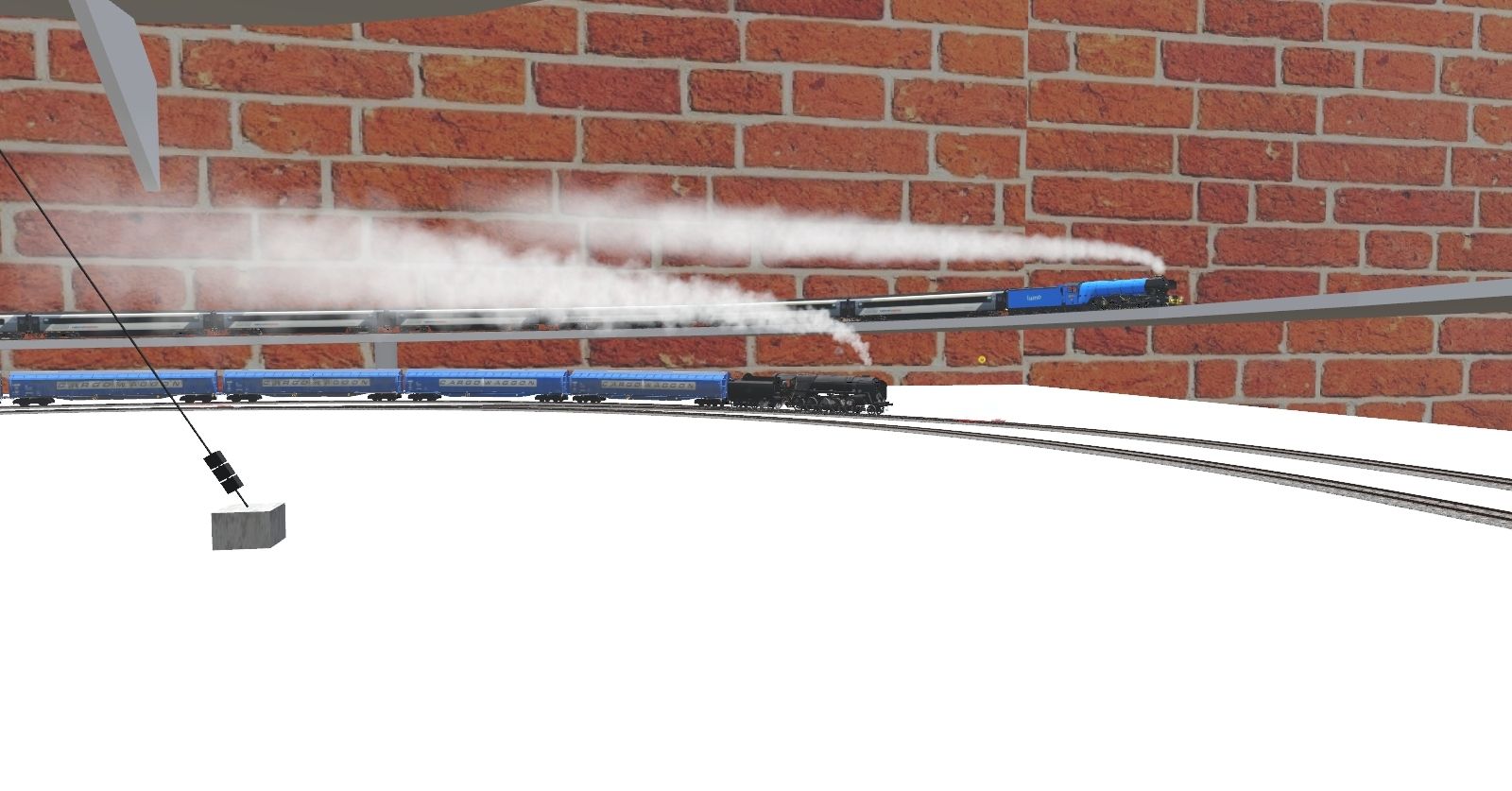 Tags: Trainz Railroad Simulator 2019, Multi Level Layout Huttel, BR 9f Double Chimney AWS Fitted, Lumo Gresley A3 LHD Double Chimney Smoke Deflectors, BR 9f tender BR1G Early Logo, Lumo Gresley A3 Tender - New Type Non-Corridor, BR IWA 26.5t Cargowaggon Blue (weathered), MK3a FO NXEA (plain shell), MK3a RFM NXEA (plain shell), MK3a SO NXEA (plain shell), MK3a TSOB NXEA (plain shell)