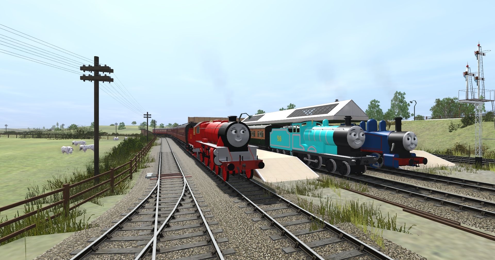 Tags: Trainz Railroad Simulator 2019, 6 Gangstas Release, Default, Flying Cam PBR, MR #132 - Cadin the Express Engine, MR #56 - Millie the Tender Engine, MR #37 - Renn the Tank Engine, handfulmacaroni - GNC Thomas, MR #56 - Millie's Tender, MR #132 - Cadin's Tender, TTTE - Henrietta, Old Bogey Coach - 1st, Old Bogey Coach - 3rd, Old Bogey Coach - Brake