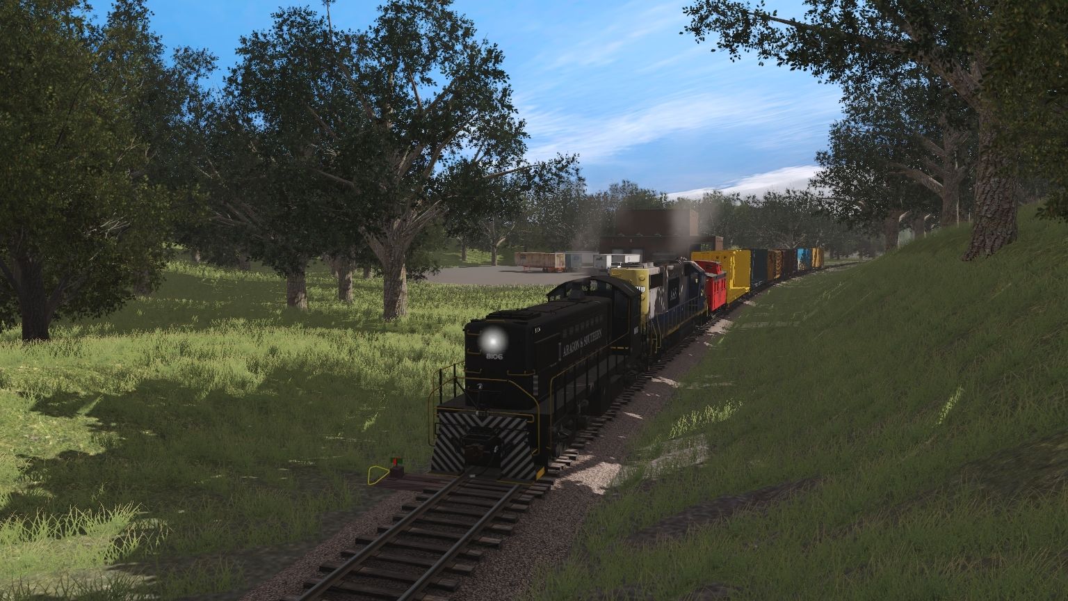 Tags: Trainz Railroad Simulator 2019, Aragon & Southern, A&S RS1, A&S GP38-2 YN2, 0-4-0T New Hope Valley 17, A&S 1890s Woodside Caboose, TUME-300584-Centerbeam-UP, TUME-300583-Centerbeam-WP, RBOX 50ft Boxcar FMC, EEC (Ex-VAMD) 50ft Boxcar FMC, Custom 60' ACF Boxcar - San Luis Obispo, Custom 60' ACF Boxcar - Sam & Euan's, Meme Boxcar 3