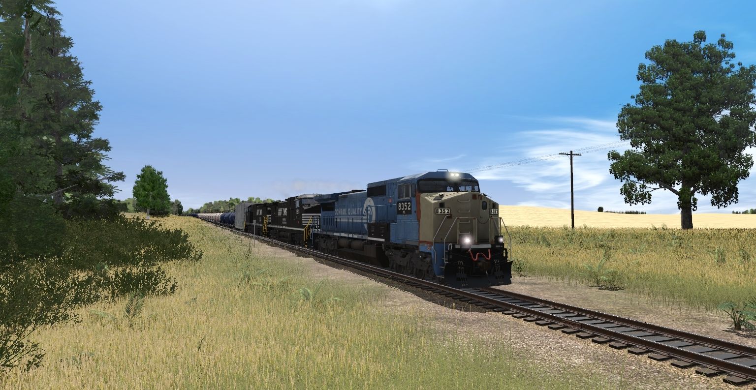 Tags: Trainz Railroad Simulator 2019, Leadville Sub Division - TRS19, Default, NS C40-8W patch (wreck rebuild), NS Dash 9-40CW #9906, NS Dash 9-40CW #9969, 50ft Boxcar IC, JRPX CB 20800 gal tank car, PROX Blue 20800 gal tank car