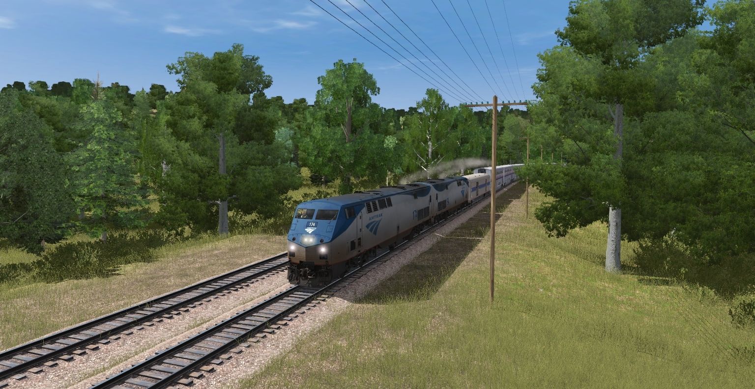 Tags: Trainz Railroad Simulator 2019, Centrella Sub Division - TRS19, Default, AMTK P42DC ph V, Amtrak ACF Baggage Car Phase IVB, Superliner II Coach 34120