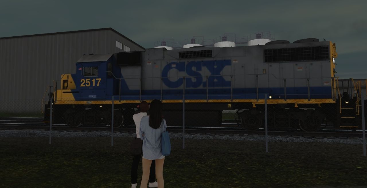 Caption: A couple watches a GP38-2 roll by after attending a concert