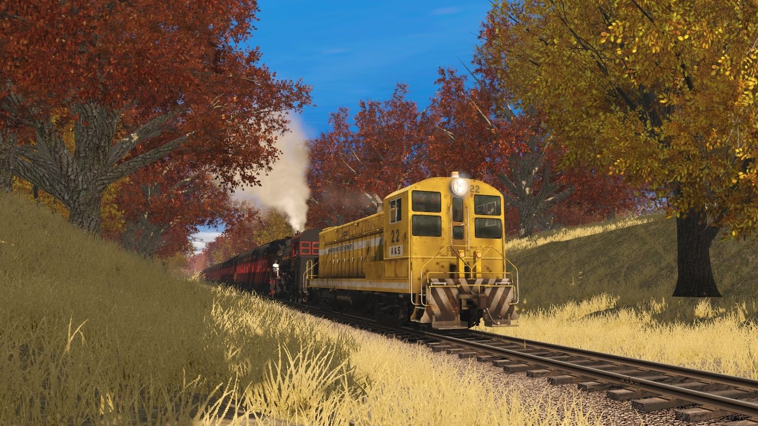 Tags: Trainz Railroad Simulator 2019, Aragon & Southern, A&S Baldwin S12 #22, A&S 0-6-0T #47, A&S Excursion Observation, A&S Excursion Diner, A&S Ex-ACE 3000 Coach, A&S Ex-N&W Coach, A&S Ex-N&W Combine, A&S Excursion Generator, A&S Excursion Tool Car