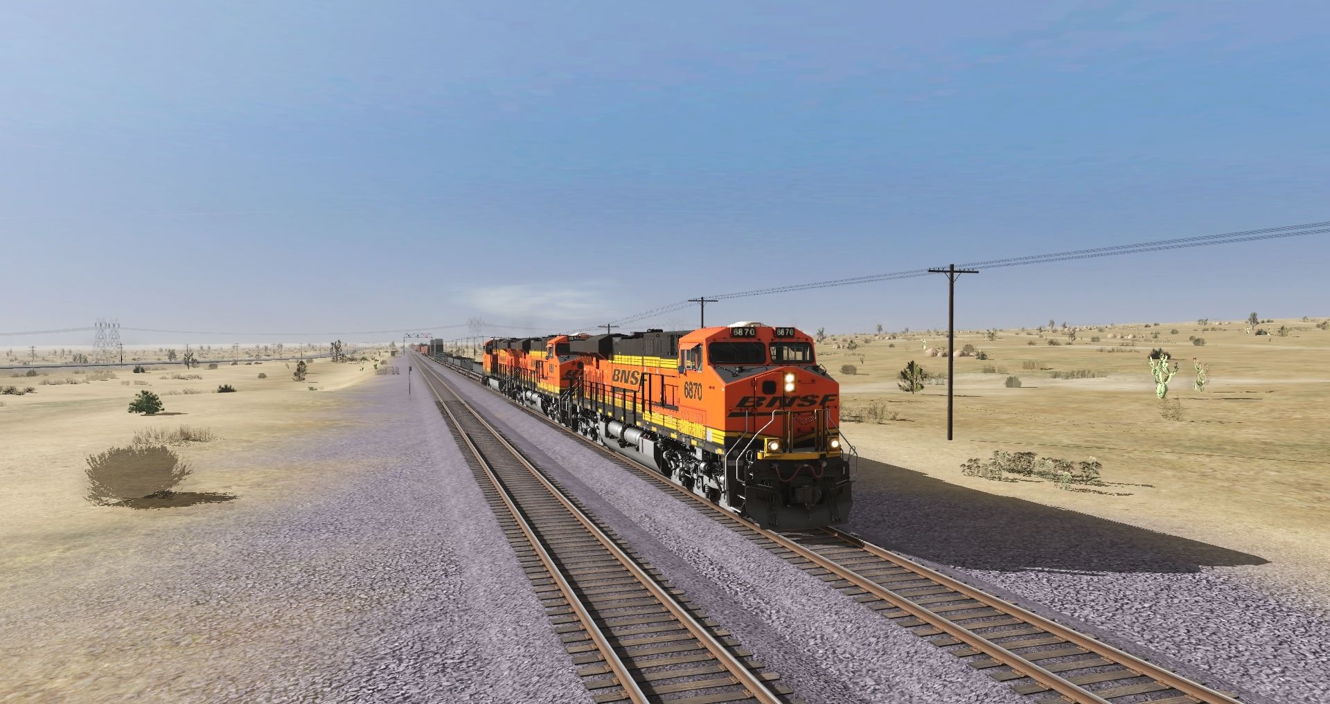 Tags: Trainz Railroad Simulator 2022, Mojave Sub Divisione, pr1, BNSF ES44C4, BNSF 60ft flatcar, BNSF 62Ft. Bulkhead, BNSF 5188 3 bay, BNSF 100 Ton Hopper, BNSF 89ft flatcar