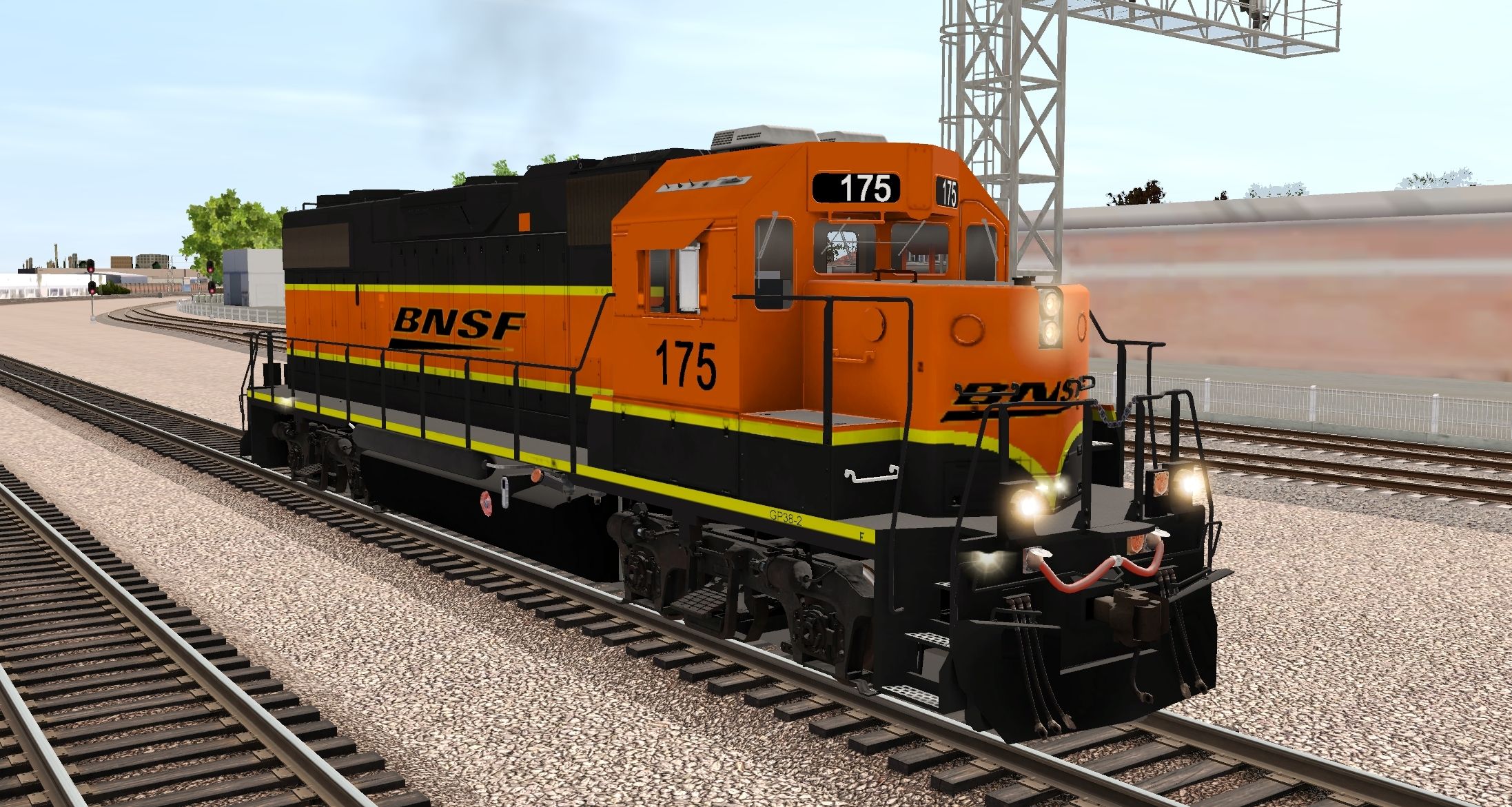 Tags: Trainz Railroad Simulator 2019, Fullerton California, Fullerton, Invisible loco, BNSF GP60 H4 PTC equipped, Crane Boom Cradle Flatcar #, Crane 150 Ton MOW Black Diesel