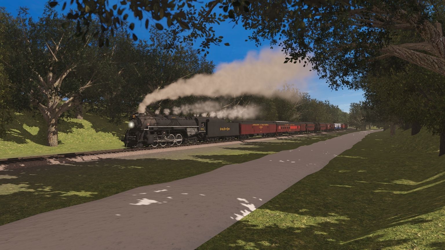 Tags: Trainz Railroad Simulator 2019, Aragon & Southern, NKP Berkshire Engine, NKP Berkshire Tender, A&S Excursion Tool Car, A&S Excursion Generator, A&S Ex-N&W Combine, A&S Ex-N&W Coach, A&S Ex-ACE 3000 Coach, A&S Sophie Diner, A&S Excursion Diner, A&S Excursion Observation, ARMN PCF 57' Reefer