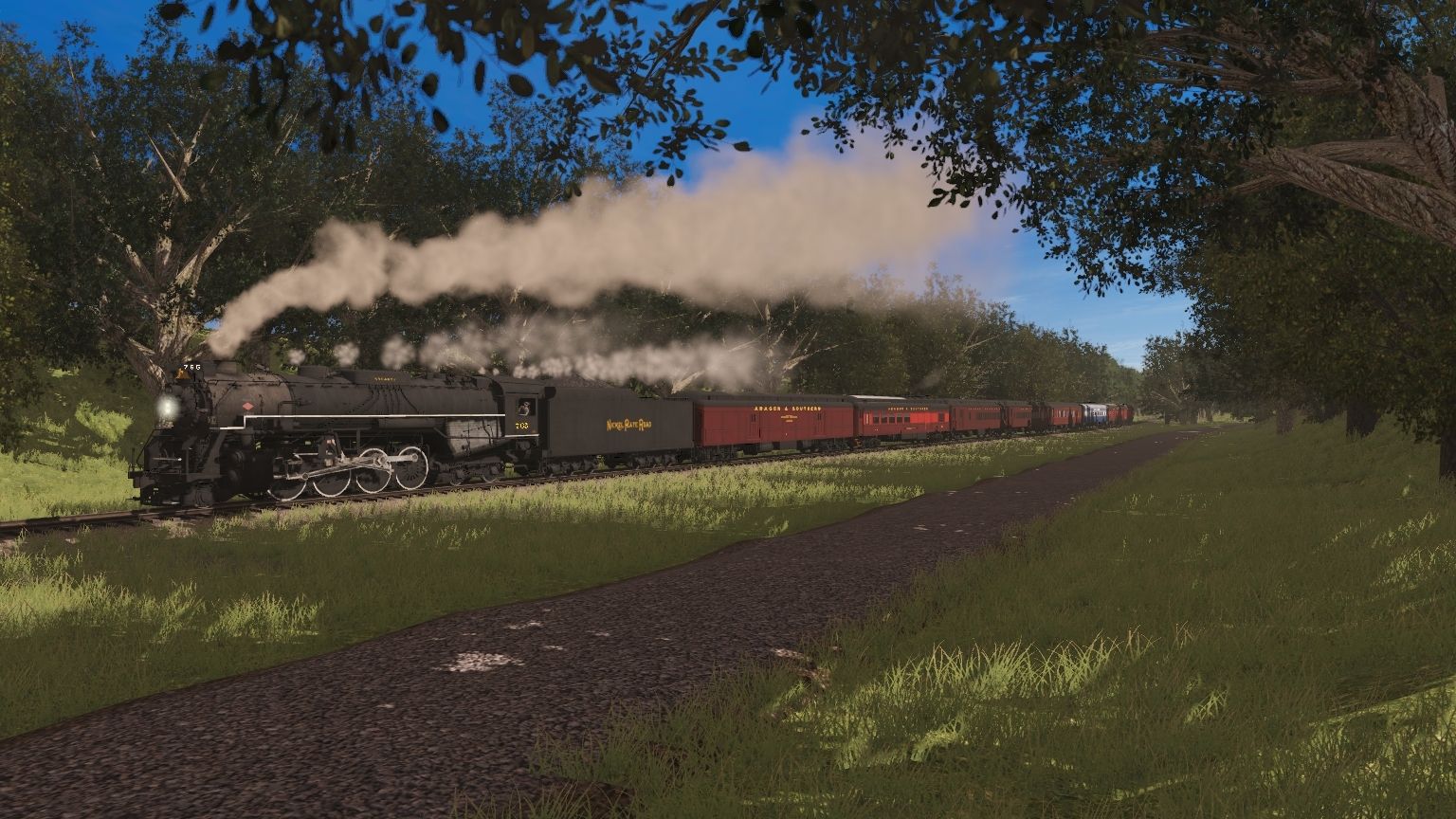 Tags: Trainz Railroad Simulator 2019, Aragon & Southern, NKP Berkshire Engine, NKP Berkshire Tender, A&S Excursion Tool Car, A&S Excursion Generator, A&S Ex-N&W Combine, A&S Ex-N&W Coach, A&S Ex-ACE 3000 Coach, A&S Sophie Diner, A&S Excursion Diner, A&S Excursion Observation, ARMN PCF 57' Reefer