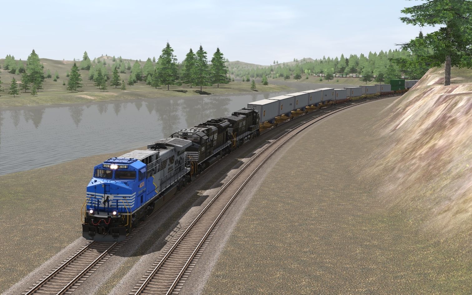 Tags: Trainz Railroad Simulator 2019, Bradfield Speedway, UMR2022 2 - Default, NS AC44C6M Yellow Mane, NS SD70ACe Late, NS AC44C6M early, 57ft Spinecar C, 57ft Spinecar A, AP53 Wellcar FEC 2 Weathered, AP53 Wellcar FEC Weathered, AP53 Wellcar FEC 2, TTX weathered 53 Husky Stack, 57ft Spinecar B, BNSF 53 Maxi-IV B (weathered)