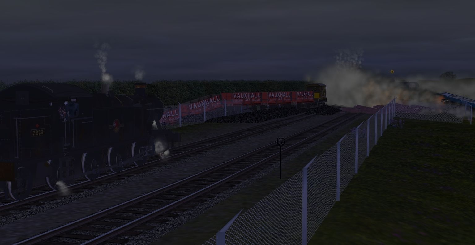 Tags: Trainz: A New Era, Crash Scene, Crash Scene - Default, BR ex GWR 7200 class, BR Standard Class 4/1-BR Lined Black Double Chimney, BR Class 37 Green Split Headcode Half Yellow, GWR King Edward II, BR 45xx ex GWR, Stanier 8F 2-8-0 BR Black, BR V class Schools, BR 57xx class, NWR Low Loader Wagon, BR(W) 20T Toad Brake Van Weathered Unfitted, BR Standard Tender BR2-Lined Black (Late logo)