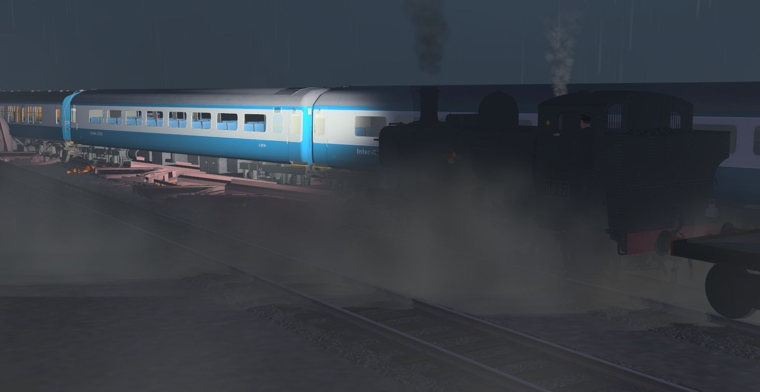 Tags: Trainz: A New Era, Crash Scene, Crash Scene - Default, AA BR 57XX 0-6-0PT 9647 BR7A, BR ex GWR 7200 class, BR Class 37 Green Split Headcode Half Yellow, GWR King Edward II, BR Standard Class 4/1-BR Lined Black Double Chimney, BR 57xx class, Stanier 8F 2-8-0 BR Black, BR V class Schools, BR wagon CAR olive/yellow, BR Blue/Grey MK2f TSO, RCH 1907 7 Plank Vauxhall #317