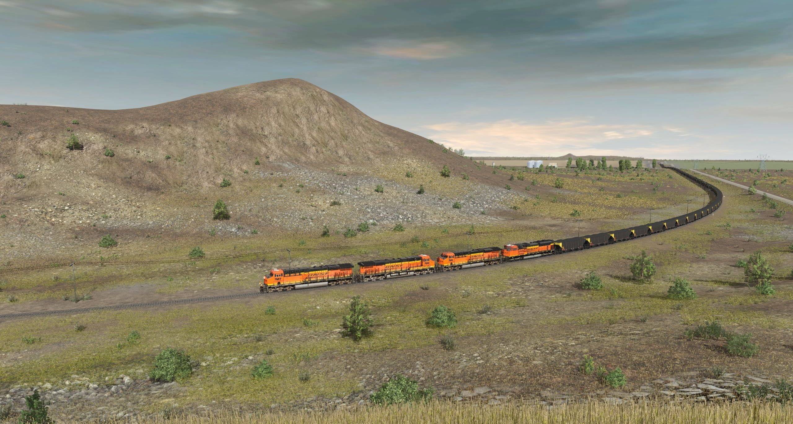 Tags: Trainz Railroad Simulator 2019, Utah southern RR Personal, Default, BNSF ES44C4, BNSF SD70ACe 2f early, BNSF ES44DC Faded, PPLX 100 Ton Hopper, HO5B BNBX 121020-121269 FCA AFIII