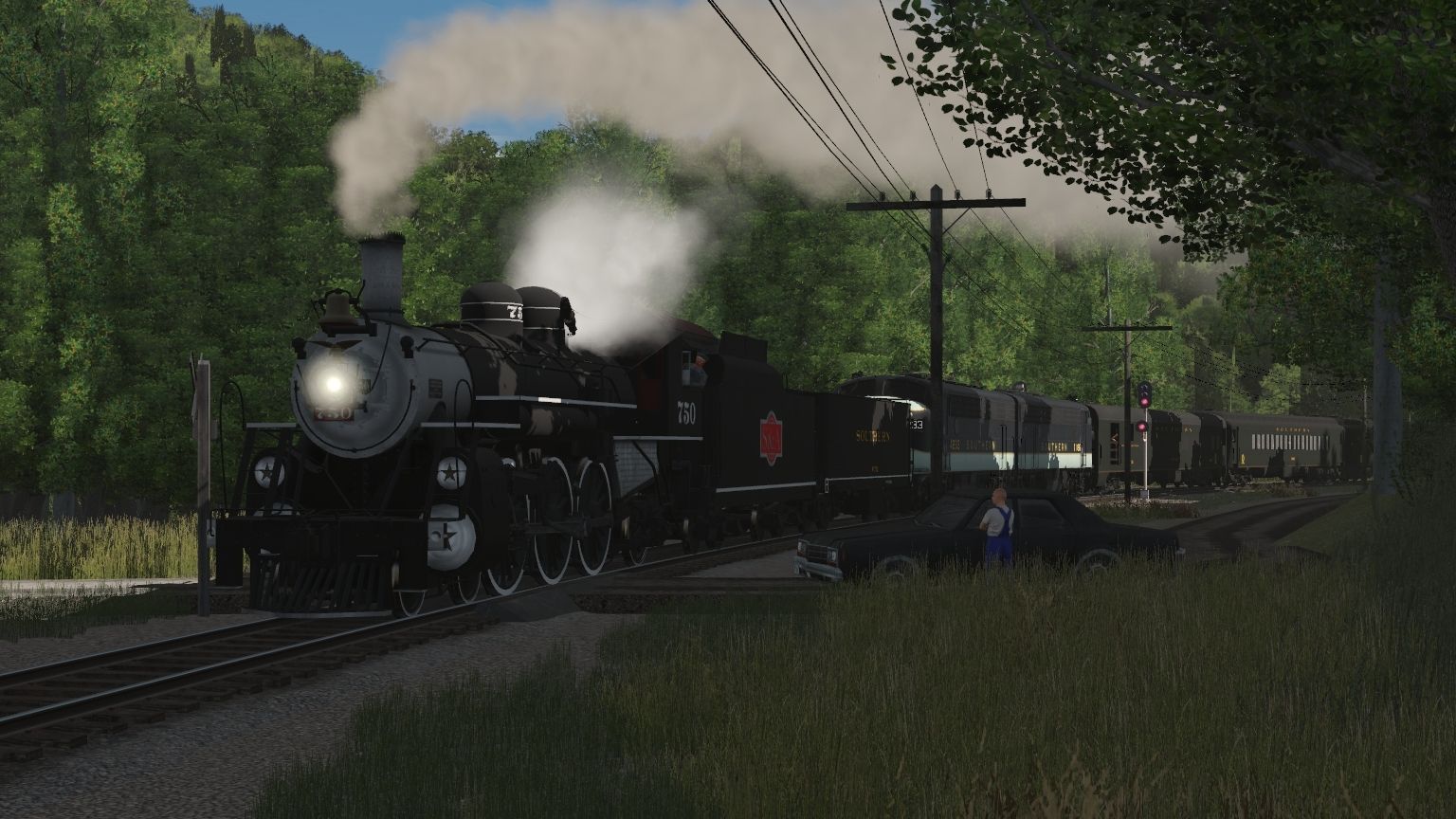 Tags: Trainz Railroad Simulator 2019, Southern Railway Old Fort Loops, S&A 750 Engine, SOU F7A, S&A 750 Tender, Southern Aux Tender WT52, Southern Coach 726 Man O War, Southern Coach 1084 Heavyweight, Southern Coach 1087 Heavyweight, Southern Coach 1081 Heavyweight, Southern Coach 1067 Archroof, Southern Coach 1086 Heavyweight, Southern Coach Lounge