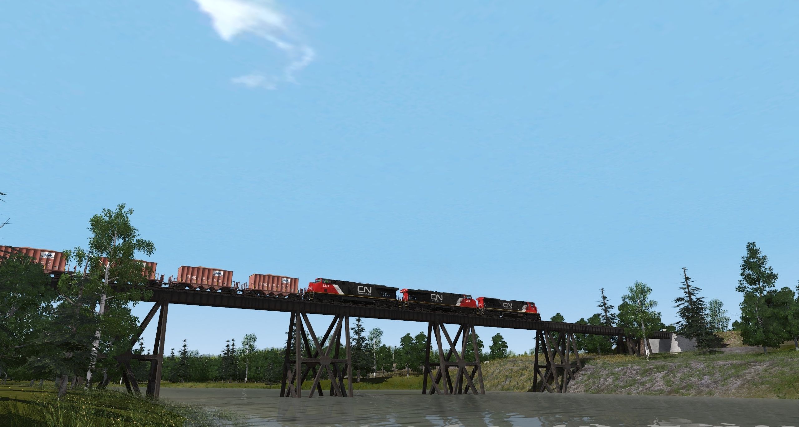 Tags: Trainz Railroad Simulator 2019, Michigan Iron Ore TRS19 v3.1P, Default, CN C40-8, MWPX C40-8, MWPX GP38-2, MWPX GP40-2, GP38-2 CN 4723-4729, GP38-2 CN #4700, CN ES44DC, CN C40-8W, BTVFD Hopper ORE FLATIRON MINING COMPANY BXRD Yellow stripe, BTVFD Hopper Versaflood FLATIRON MINING COMPANY, MWPX 140 ton flat car
