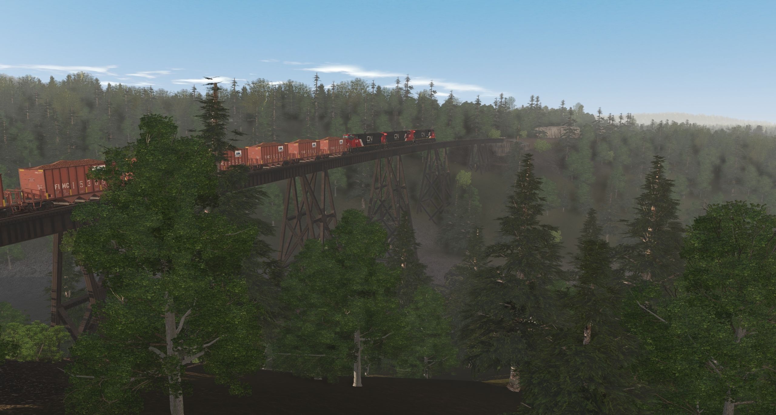 Tags: Trainz Railroad Simulator 2019, Michigan Iron Ore TRS19 v3.1P, Default, CN ES44DC, CN C40-8, BTVFD Hopper ORE FLATIRON MINING COMPANY BXRD Yellow stripe