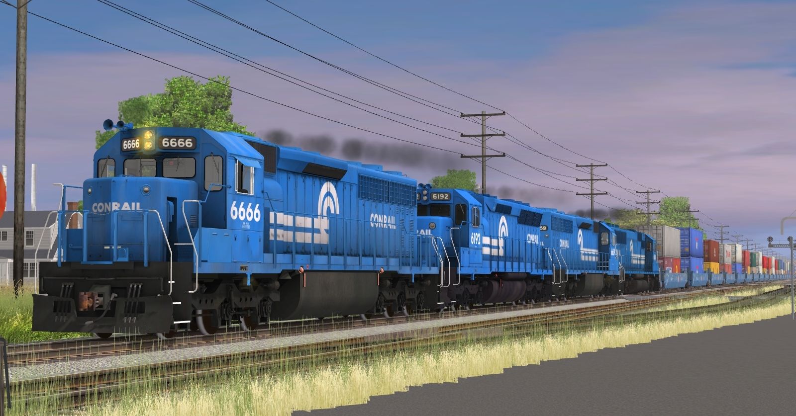 Tags: Trainz: A New Era, PRR Greenville to Indianapolis, Stearman M4 Startup, SD45-2 Conrail #6666, SD45 Conrail, SD45-2 Conrail #6659, SD60 Conrail exDemo, 53ft Pacer Wellcar (Single), 53ft Pacer Wellcar Weathered (Single), Invisible Train