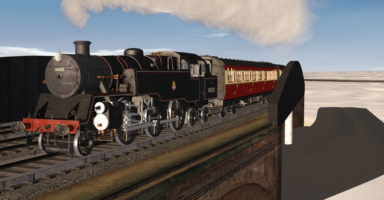 Tags: Trainz Railroad Simulator 2019, South London Test MK 2.09K V5.5, BR 4mt Tank [BR Black], BR Maunsell 59 ft R4 FK First (Low Window) - Crimson and Cream, BR Maunsell 59 ft R4 TK Third (Low Window) - Crimson and Cream, BR Maunsell 59 ft R4 BCK Brake Composite (Low Window) - Crimson and Cream