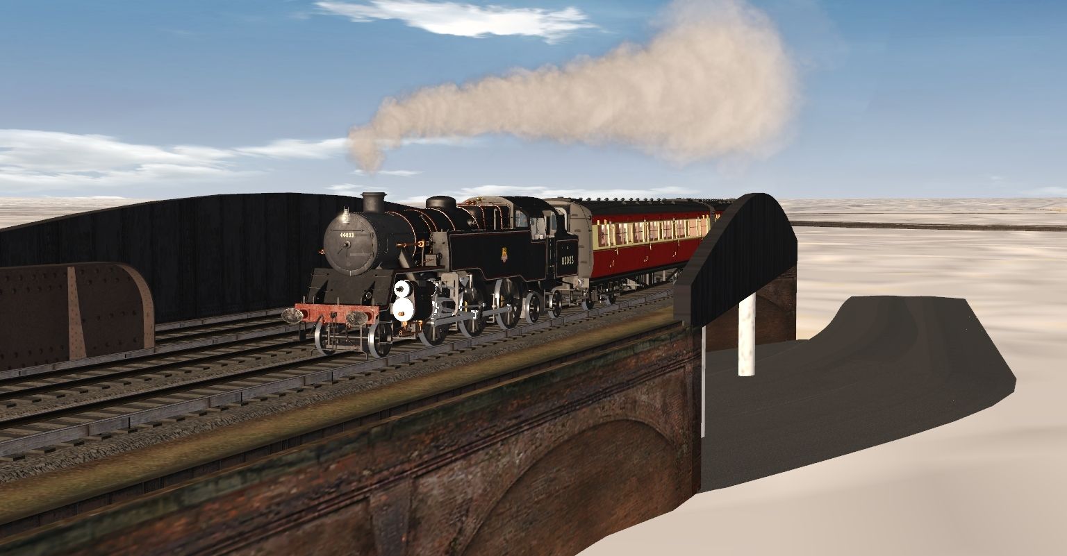 Tags: Trainz Railroad Simulator 2019, South London Test MK 2.09K V5.5, BR 4mt Tank [BR Black], BR Maunsell 59 ft R4 FK First (Low Window) - Crimson and Cream, BR Maunsell 59 ft R4 TK Third (Low Window) - Crimson and Cream, BR Maunsell 59 ft R4 BCK Brake Composite (Low Window) - Crimson and Cream